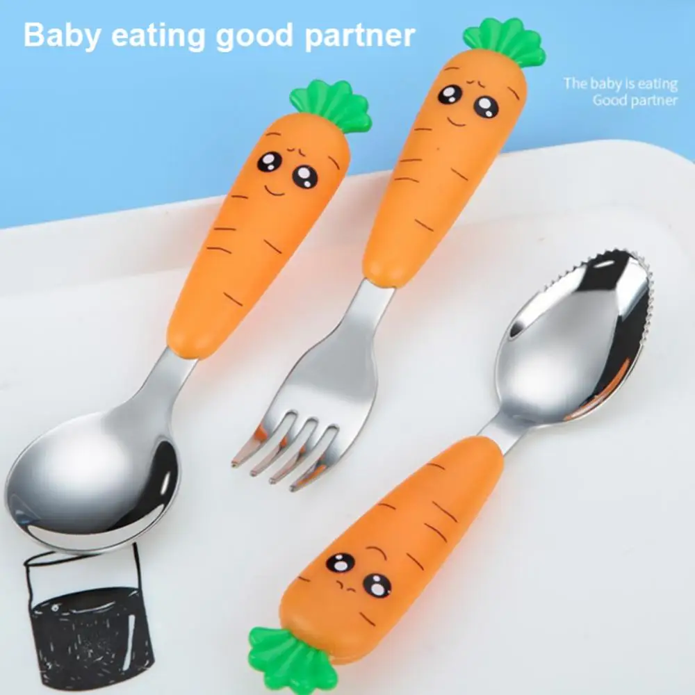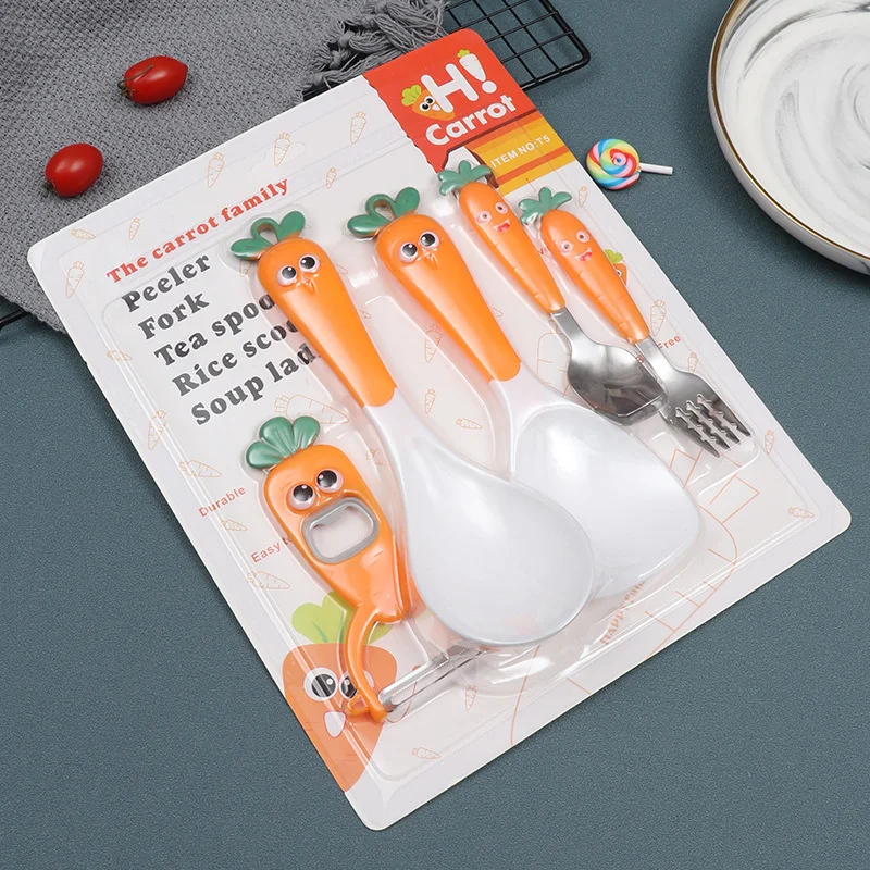 Набор из 4 предметов в виде моркови, Детская столовая посуда из нержавеющей стали в коробке, кухонная посуда для кормления ребенка