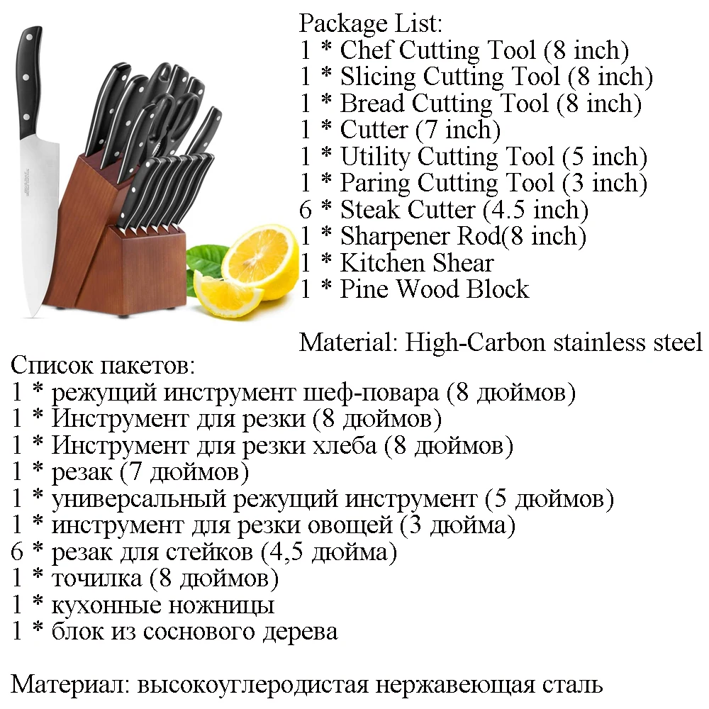 Набор из 7/8/15 шт. кухонных ножей с деревянной ручкой, набор кухонных режущих инструментов с точилкой, 1.4116 ножницы с лезвиями из нержавеющей стали