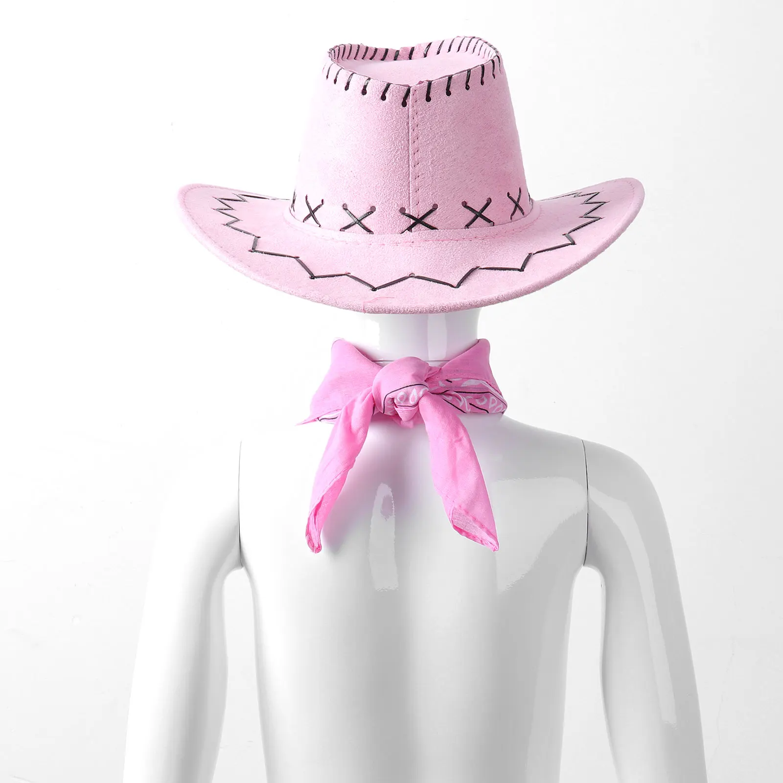 Комплект ковбоя Wild West, розовый шарф с узором пейсли, бандана, войлочная ковбойская Кепка, шляпы с регулируемой пряжкой для детей.