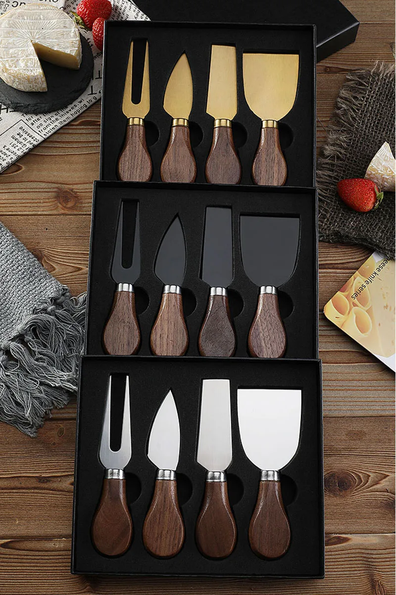 Jaswehome Премиум изысканный набор ножей для сыра, нержавеющая сталь, вилка, распределитель, коллекция, рукоятка из ореха, слайсер для сыра с подарочной коробкой