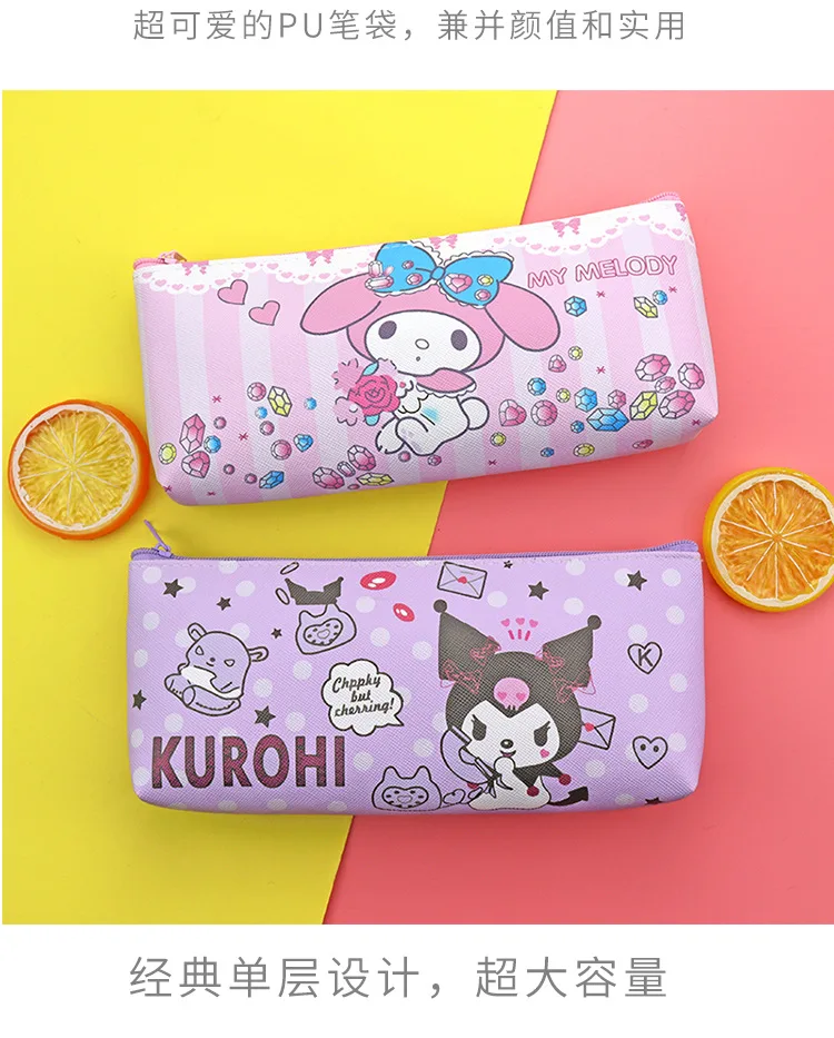 Kawaii Sanrio koomi Pu на двойной молнии для карандашей сумка с мультипликационным принтом My Melody Cinnamoroll канцелярская коробка студенческий Большой Вместительный чехол-карандаш