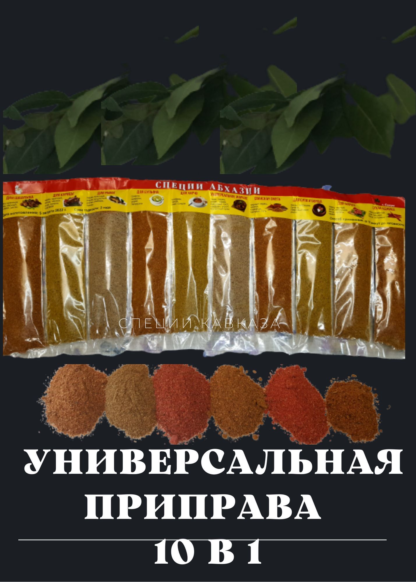 Описание: Предлагаем вашему вниманию кавказские специи Абхазии. Они собраны из натуральных ингредиентов, без СОЛИ, без ГМО. Специи Абхазии станут идеальным помощником на вашей кухне и придадут вашим блюдам изысканный вкус и аромат. Такие блюда как плов по-узбекски, шашлык, корейские салаты, сациви, лагман, различные бульоны, соусы, картофель, птицу вы сможете приготовить по-новому благодаря нашим специям