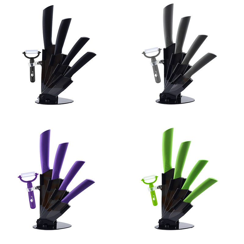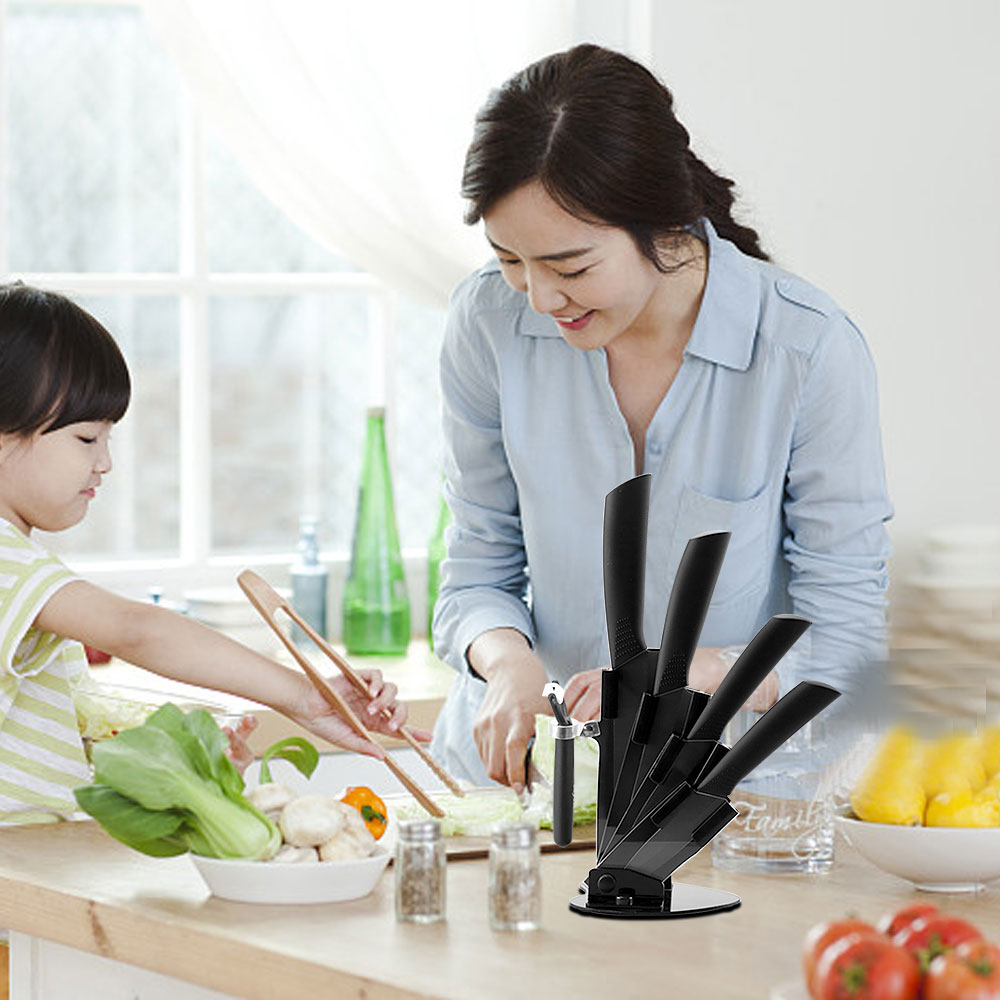 Набор керамических кухонных ножей, набор кухонных ножей шеф-повара 6 дюймов с подставкой и черным лезвием, 3 дюйма, для чистки, нарезки фруктов, нарезки овощей, 4 дюйма, 5 дюймов