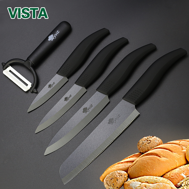 Набор керамических кухонных ножей, зубчатый нож для хлеба, Овощечистка, черное циркониевое лезвие, для приготовления фруктов, 3 дюйма, 4 дюйма, 5 дюймов, 6 дюймов
