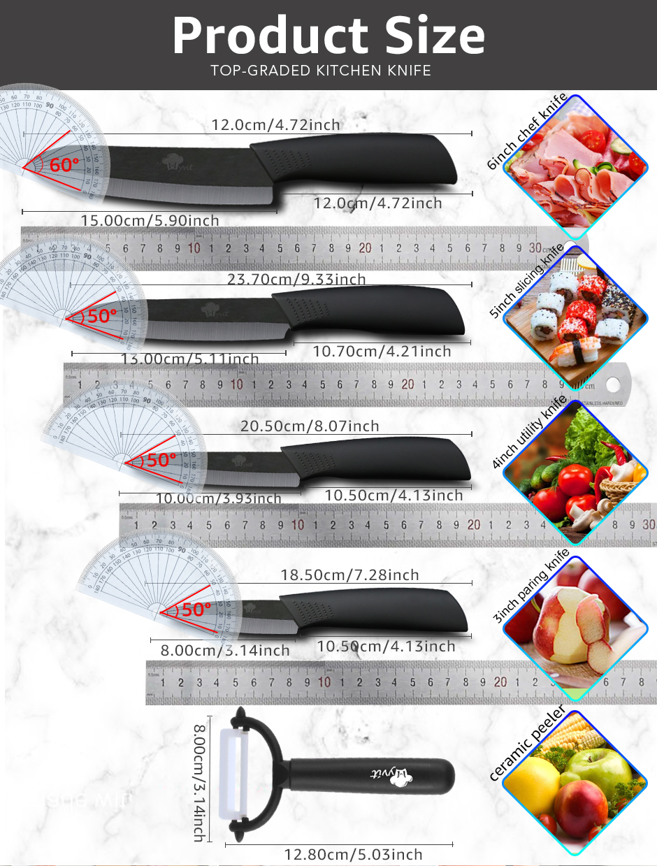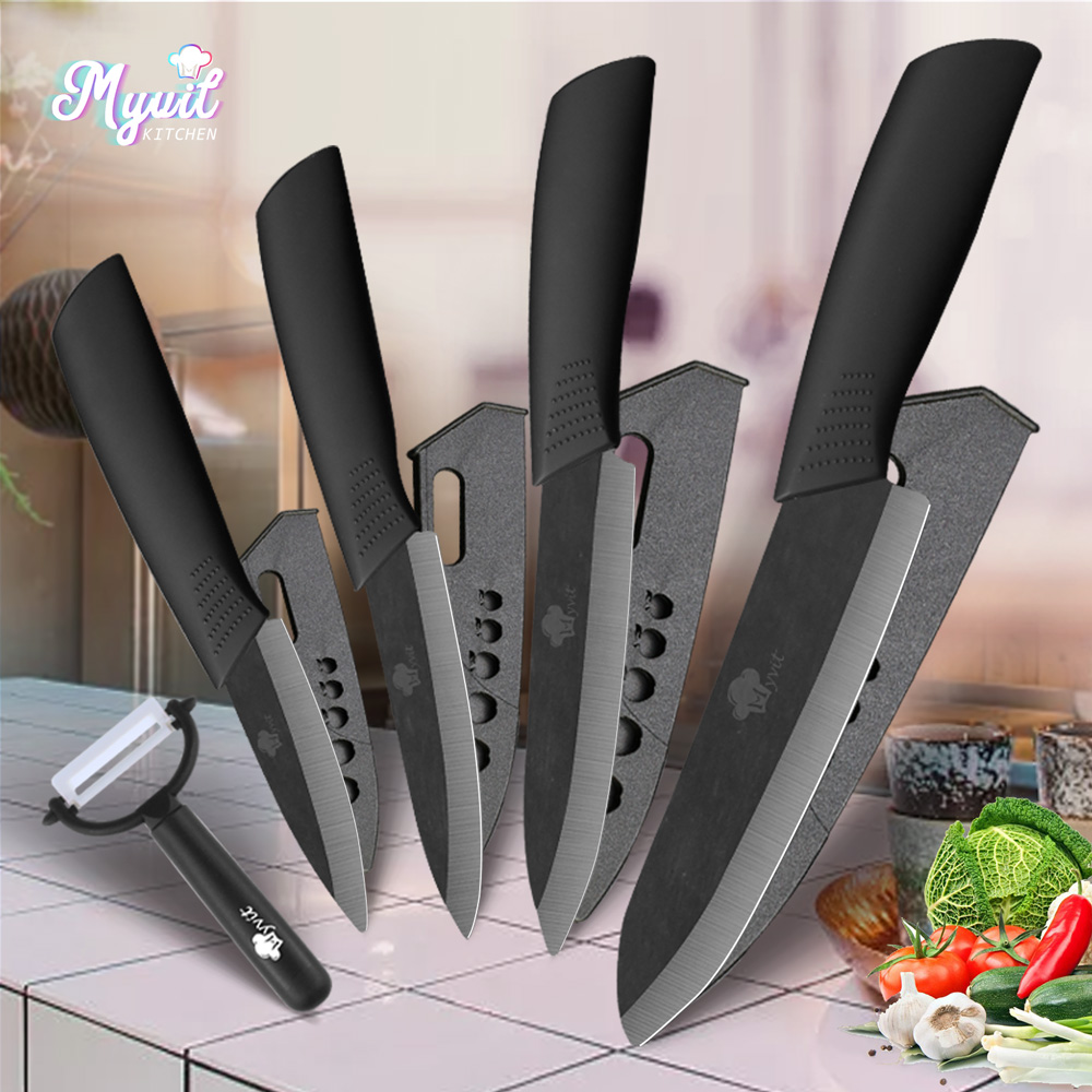 Набор керамических ножей с овощечисткой, шеф-нож для чистки овощей, универсальный нож для нарезки овощей, кухонные инструменты для приготовления пищи с черным лезвием