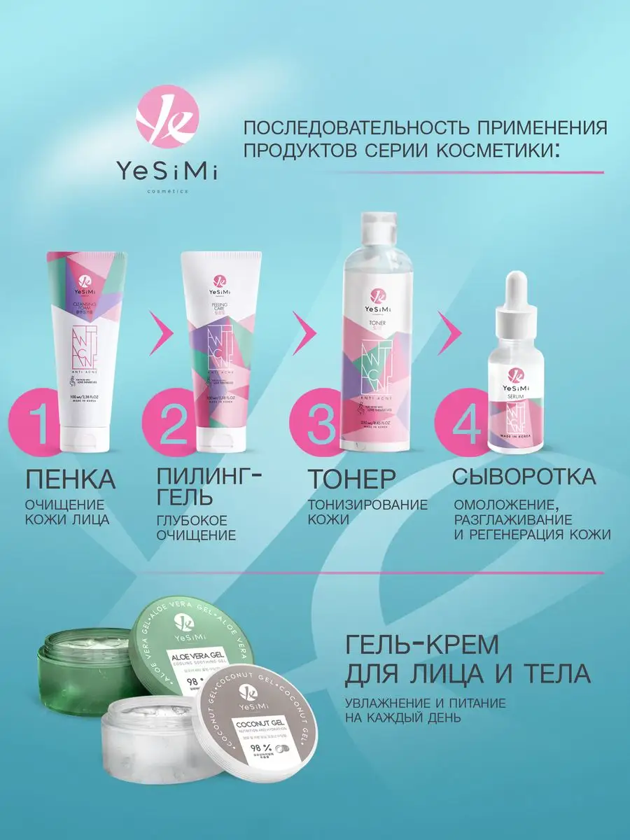 Комплектация Сыворотка; тонер; пена для умывания; пилинг скатка; гель алое
