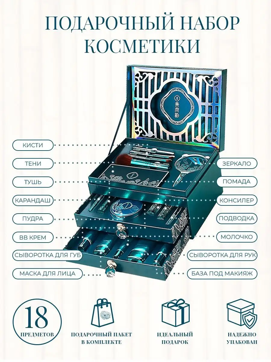 Комплектация подарочный пакет - 1 шт; набор шкатулка для макияжа лица подарочный бьюти бокс - 1 шт; Beauty Box