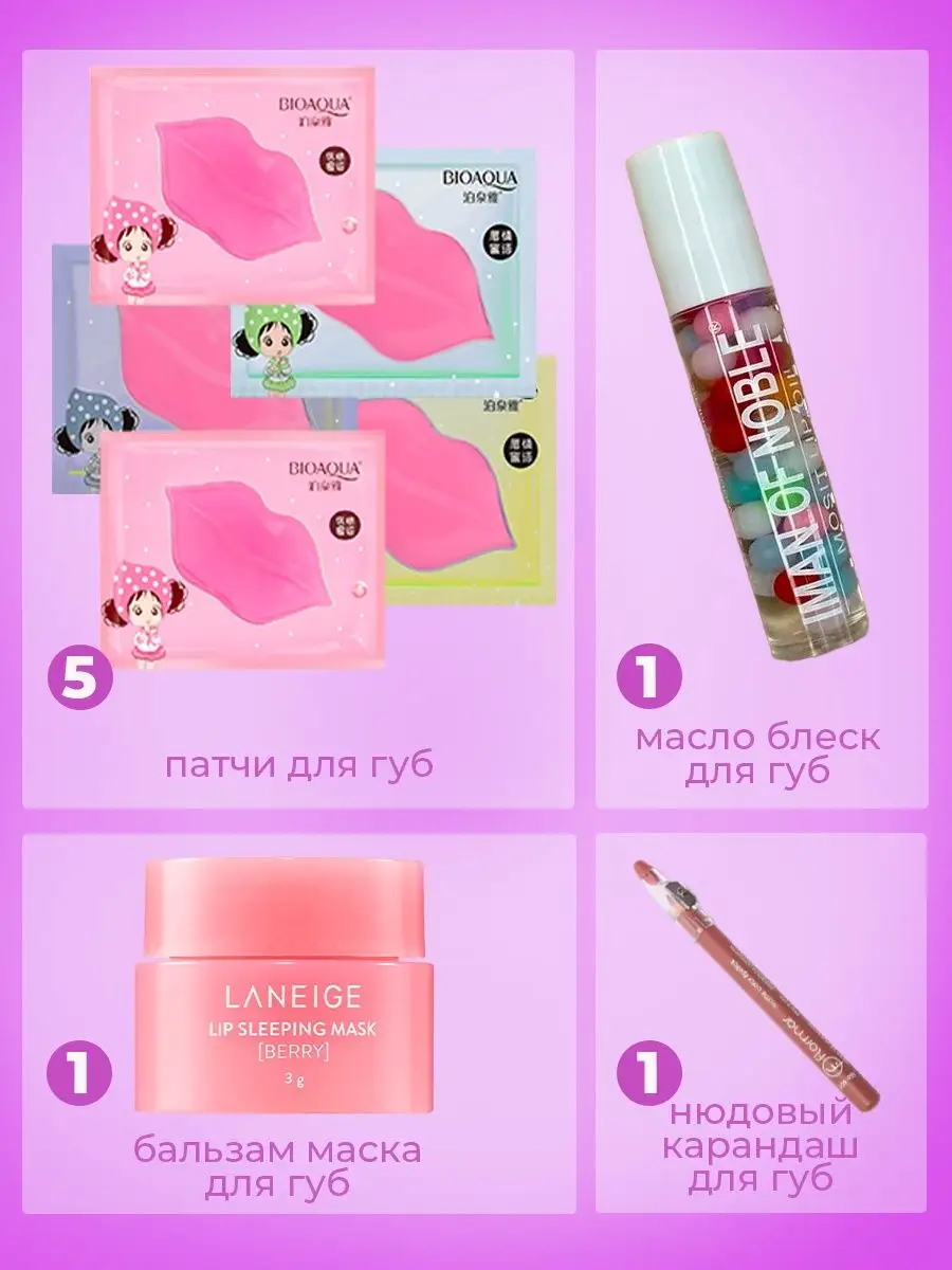 Артикул 151322795 Состав маски для губ, блеск для губ, карандаш для губ, бальзам для губ