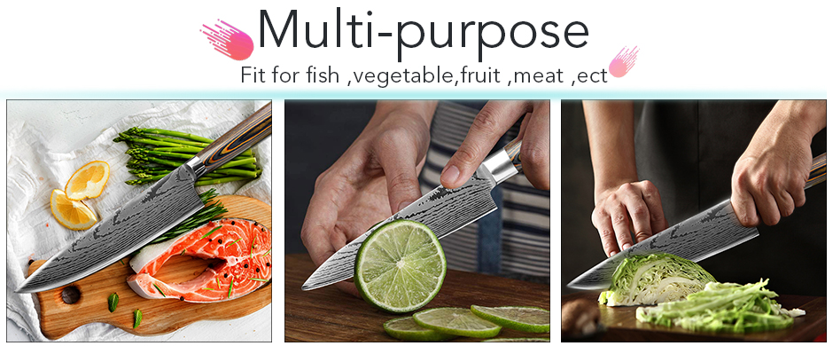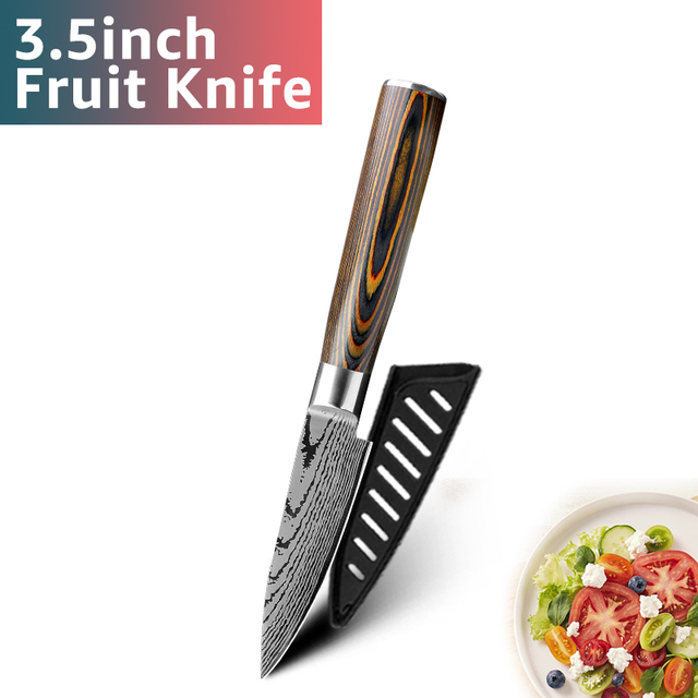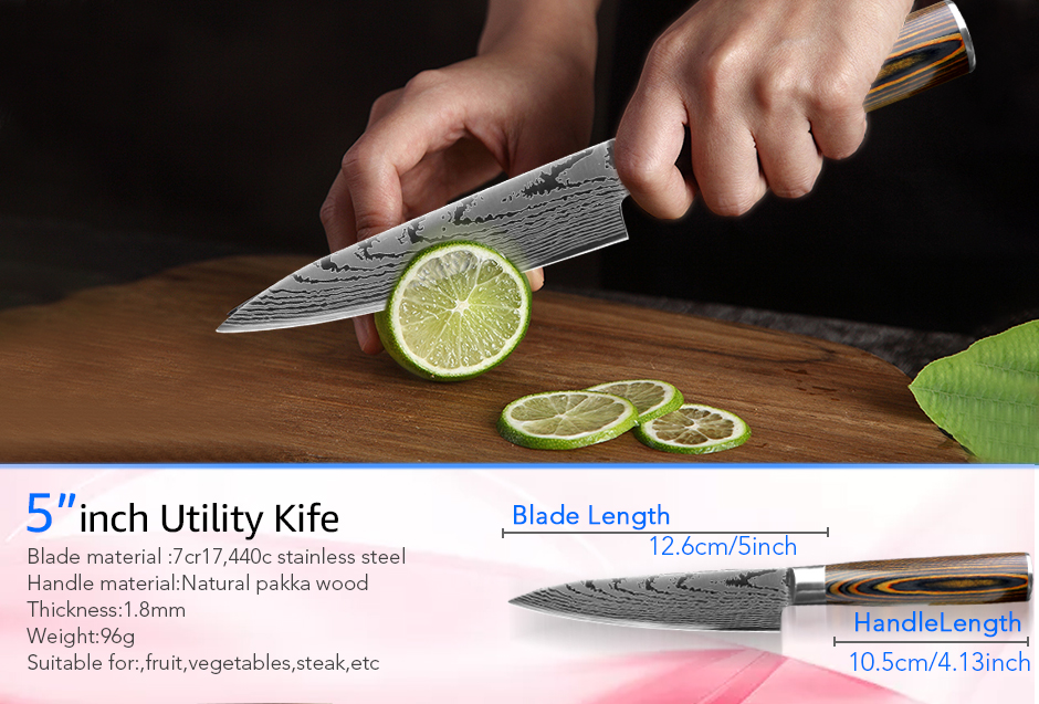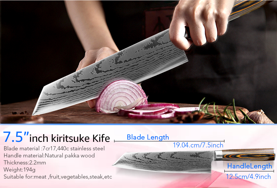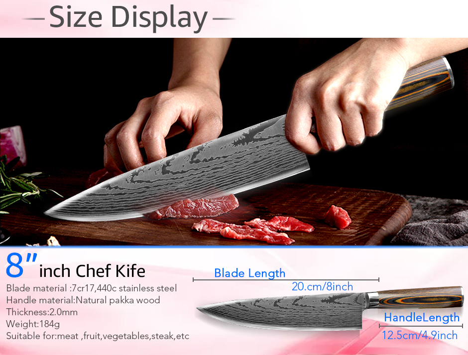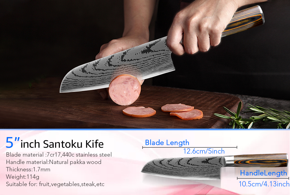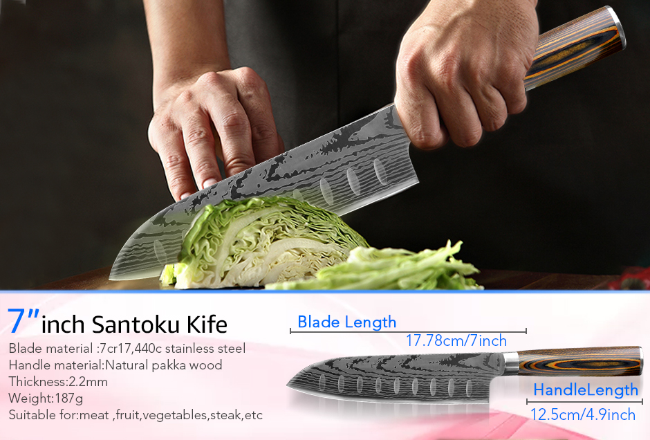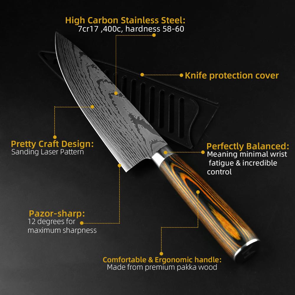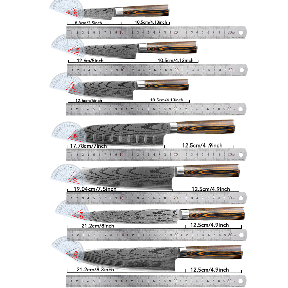 Набор кухонных ножей 7CR17 440C, японский шеф-повар из высокоуглеродистой нержавеющей стали, лазерная шлифовка, имитация Дамасского Клинка