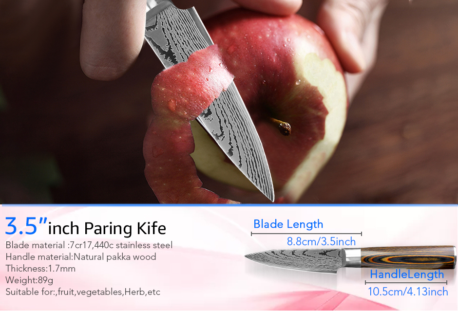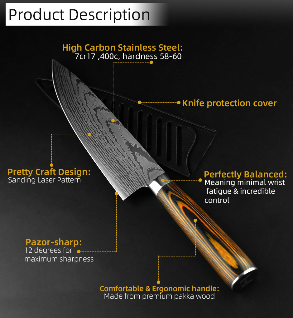 5. Материал: ручка --- высококачественная древесина Pakka, лезвие --- нержавеющая сталь 7cr17.