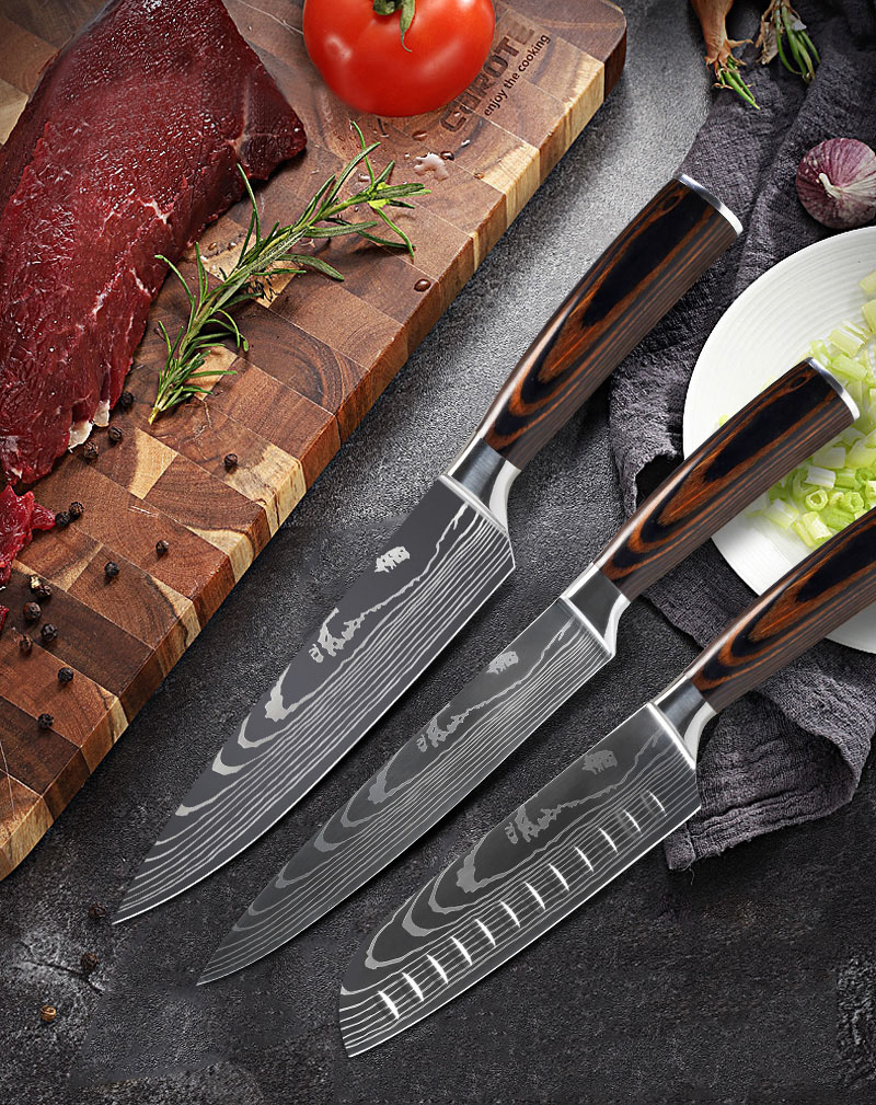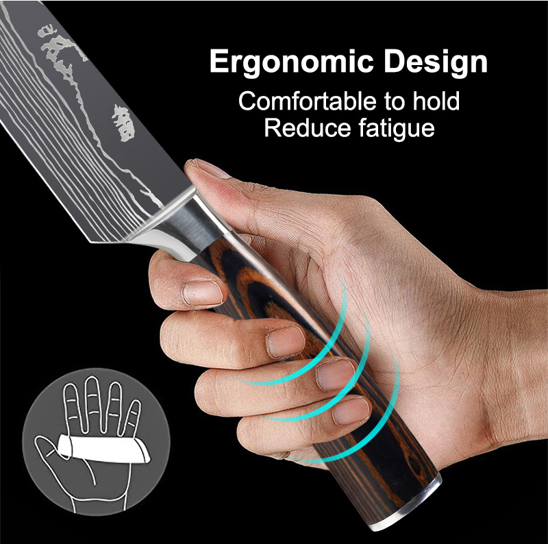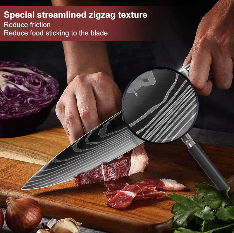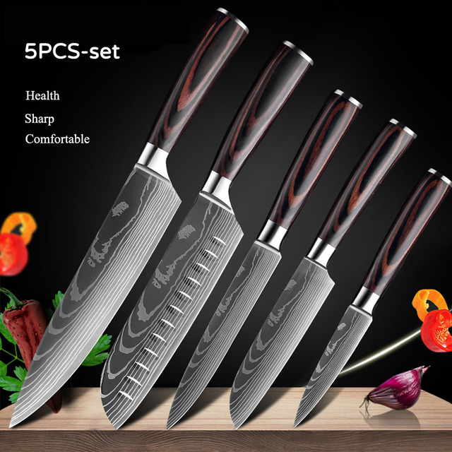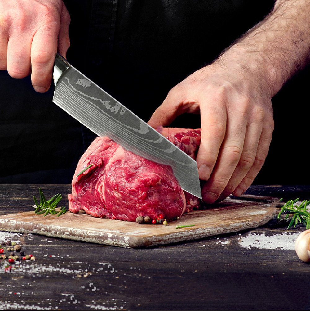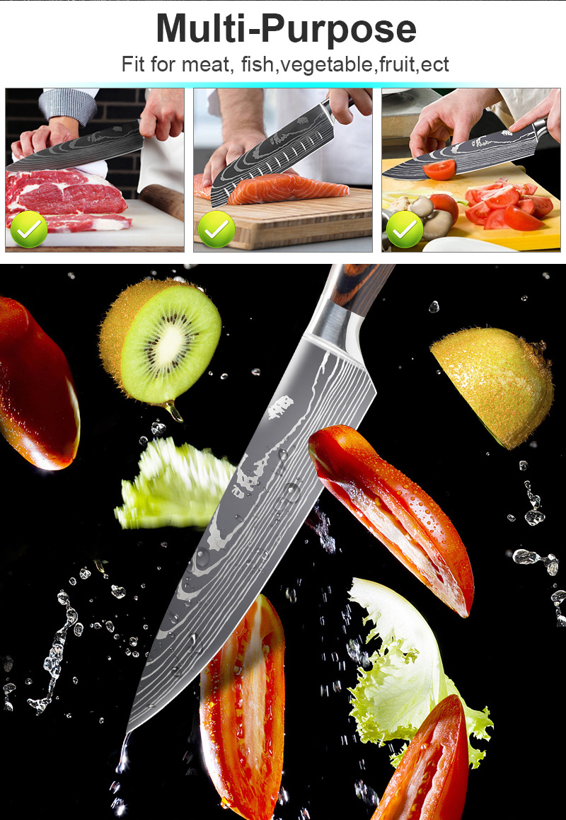 Набор кухонных ножей, профессиональные шеф-ножи 7CR17 с лазерным Дамасским узором, японское мясницкое режущее средство сантоку, 1-10 шт.