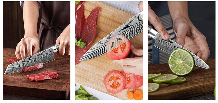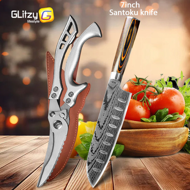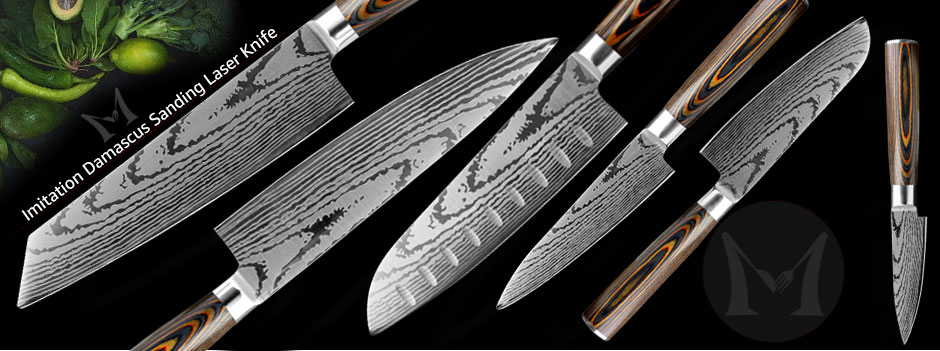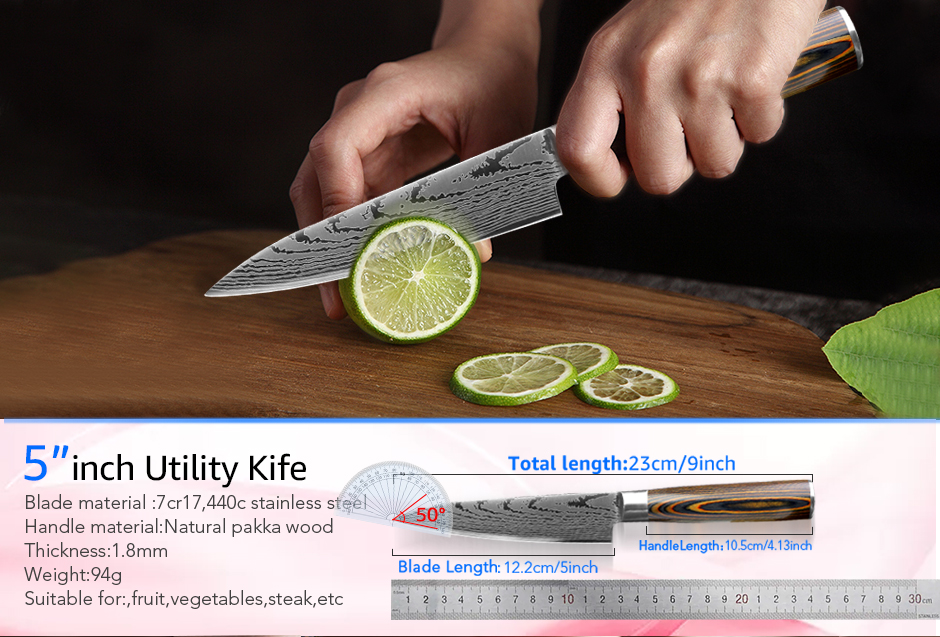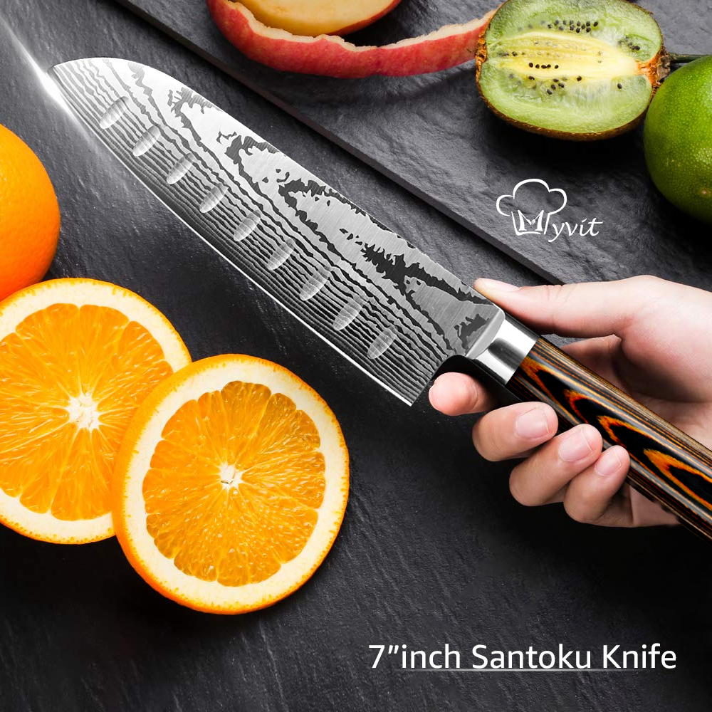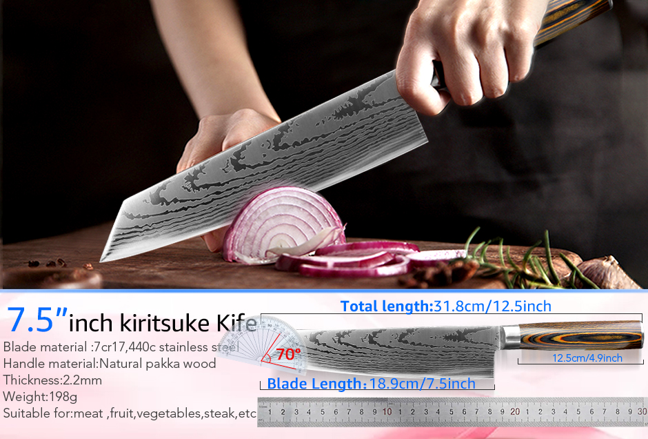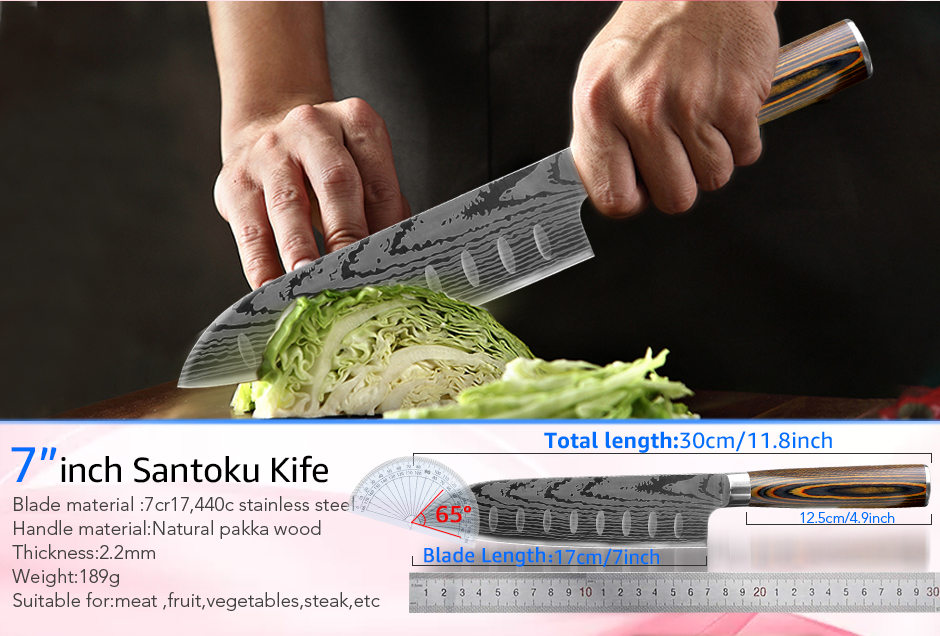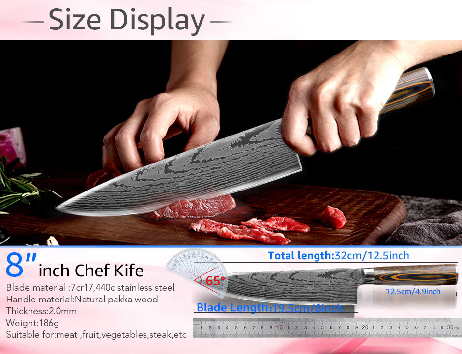 Набор кухонных ножей, профессиональный шеф-повар 7CR17 из немецкой нержавеющей стали, лазерный резец Дамасского цвета для нарезки мяса, сантоку