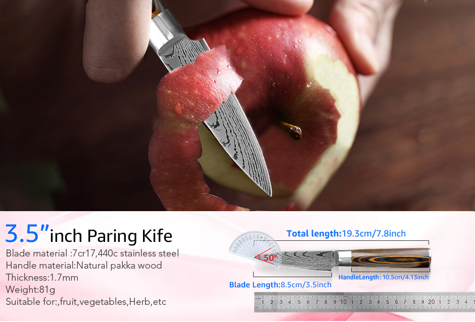 5. Материал: ручка --- высококачественное дерево Pakka, лезвие --- нержавеющая сталь 7cr1 7