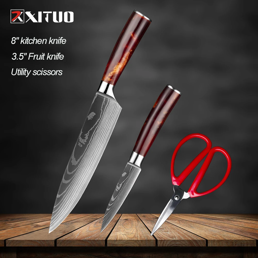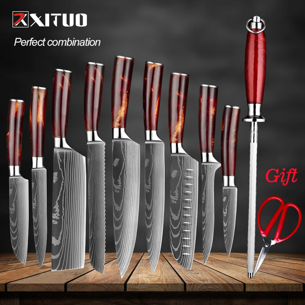 Набор кухонных ножей XITUO, изысканный комбинированный подарочный набор, Мясницкий точильный станок сантоку для нарезки ножей