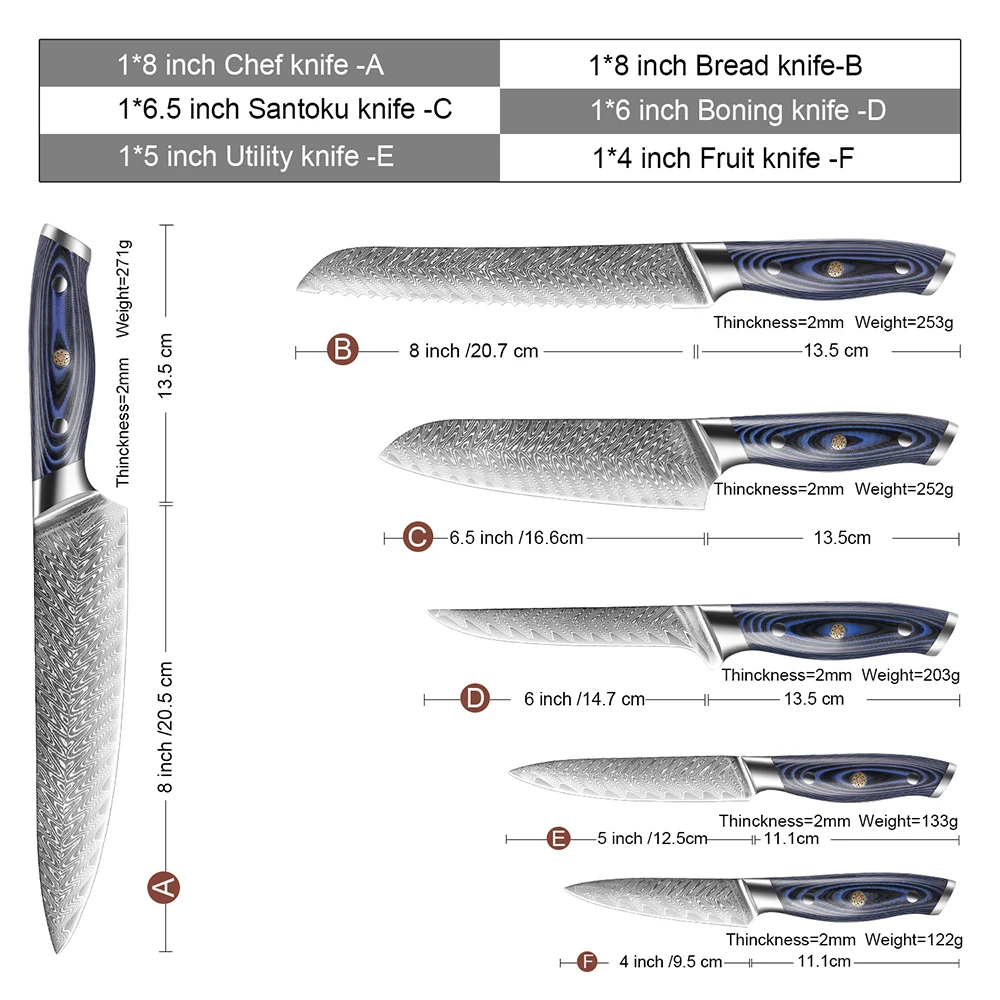 Тип ножа: XITUO Профессиональный Набор ножей для шеф-повара из Дамаска