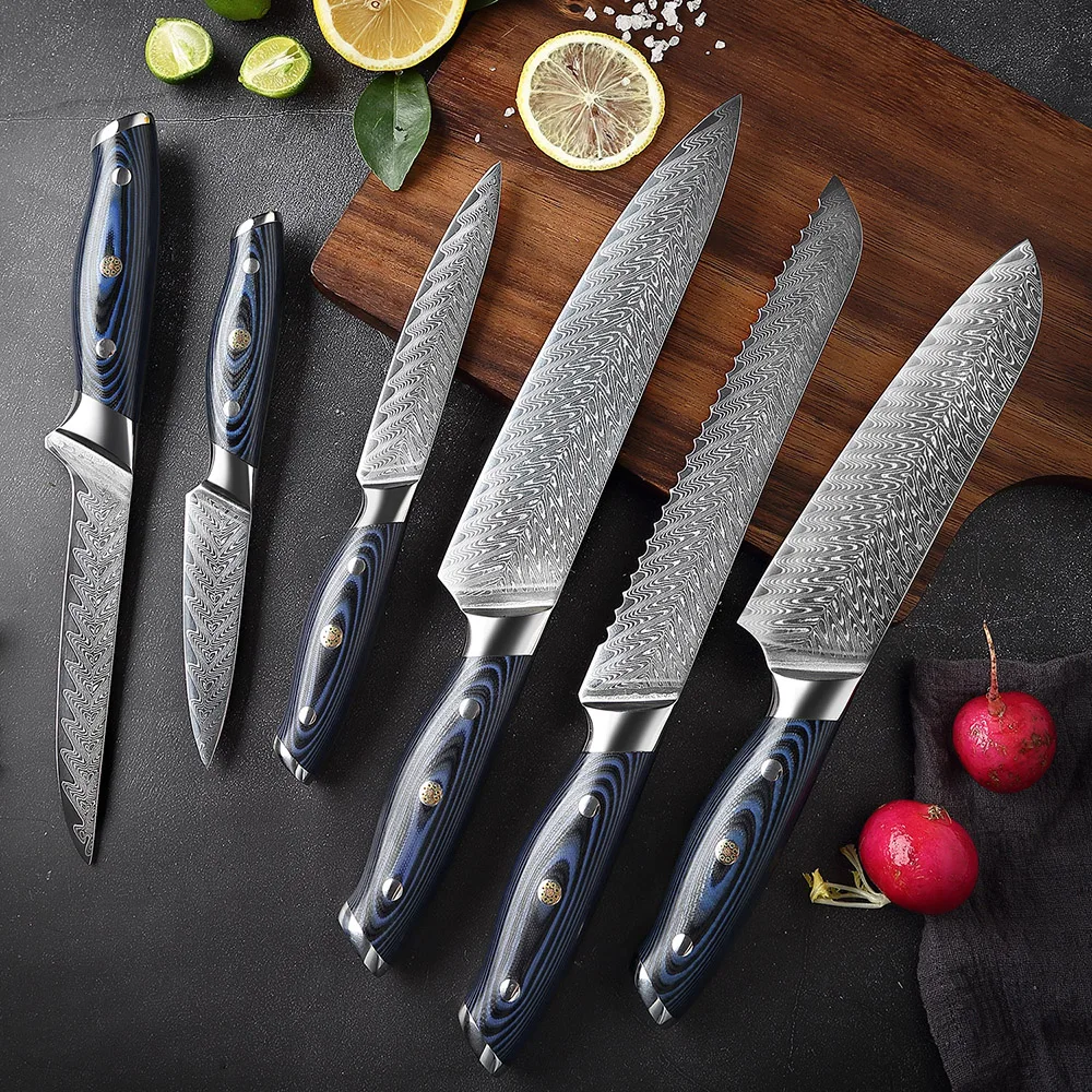 Набор ножей XITUO Damascus Chef Японский кухонный нож VG10 из нержавеющей стали Santoku Универсальные обвалочные ножи для хлеба G10 Ручка в подарок