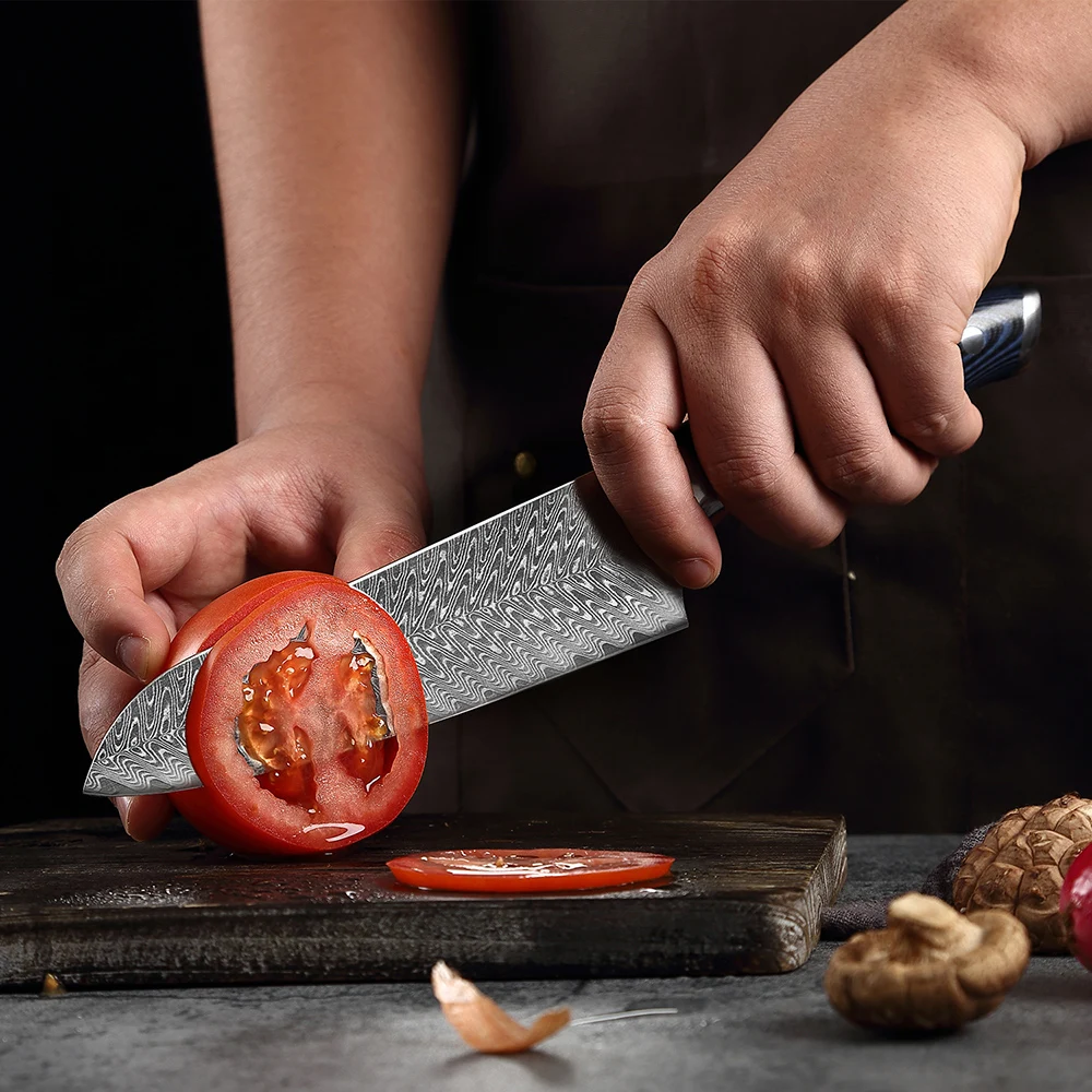 Набор кухонных ножей XITUO VG10 из дамасской стали, японский шеф-повар из нержавеющей стали, универсальный Мультитул сантоку, ручка синего цвета для обвалки хлеба