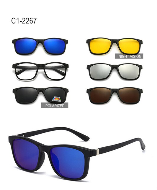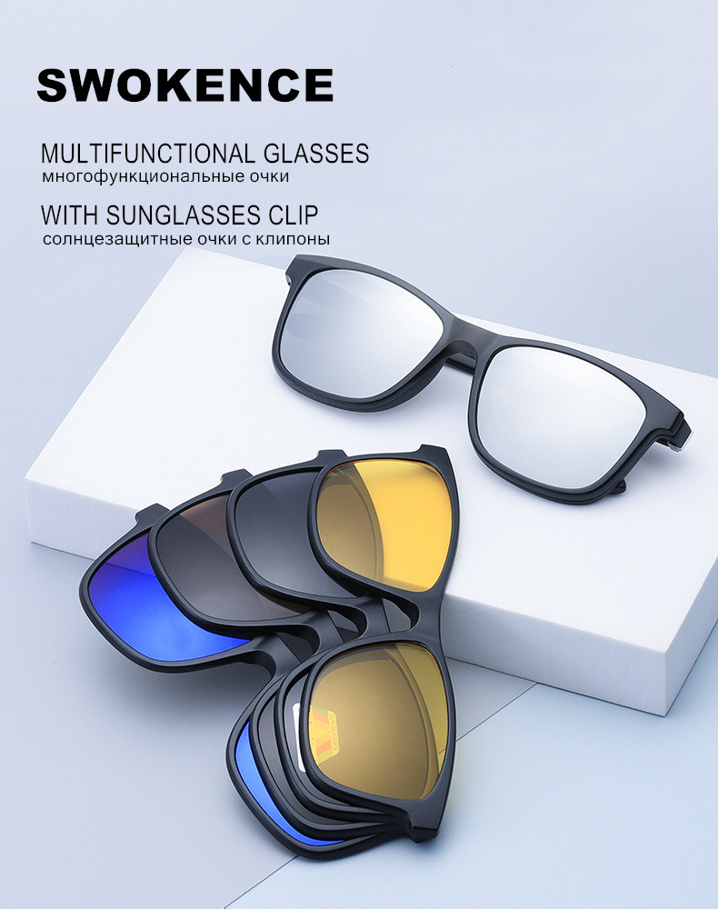 Набор Магнитных солнцезащитных очков 6 в 1 для мужчин и женщин, поляризационные или ночное зрение, оптические оправы из TR90 или пластмассовый, S508
