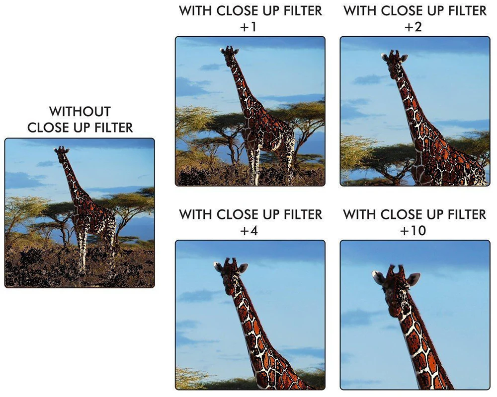 Фильтр крупного плана включает в себя: + 1, + 2, + 4 и + 10 объективов.