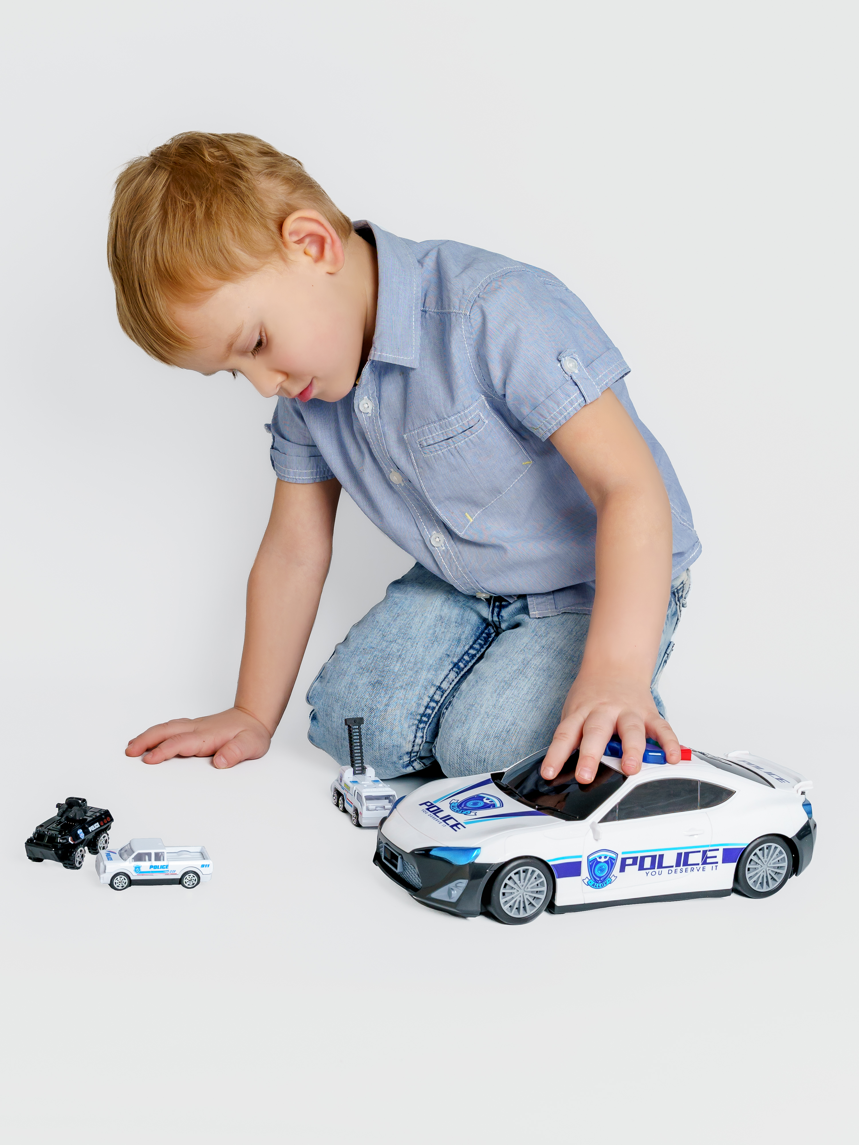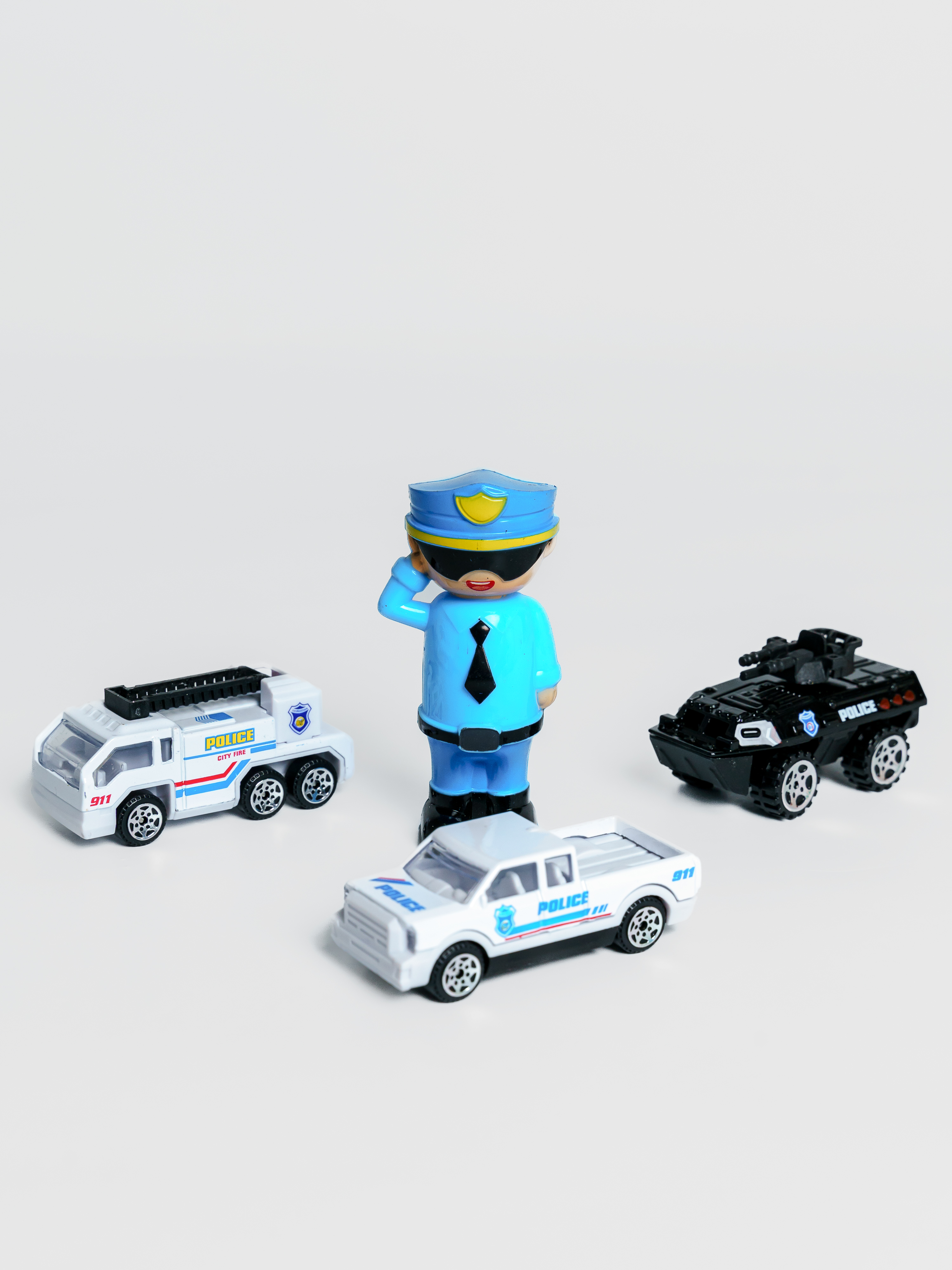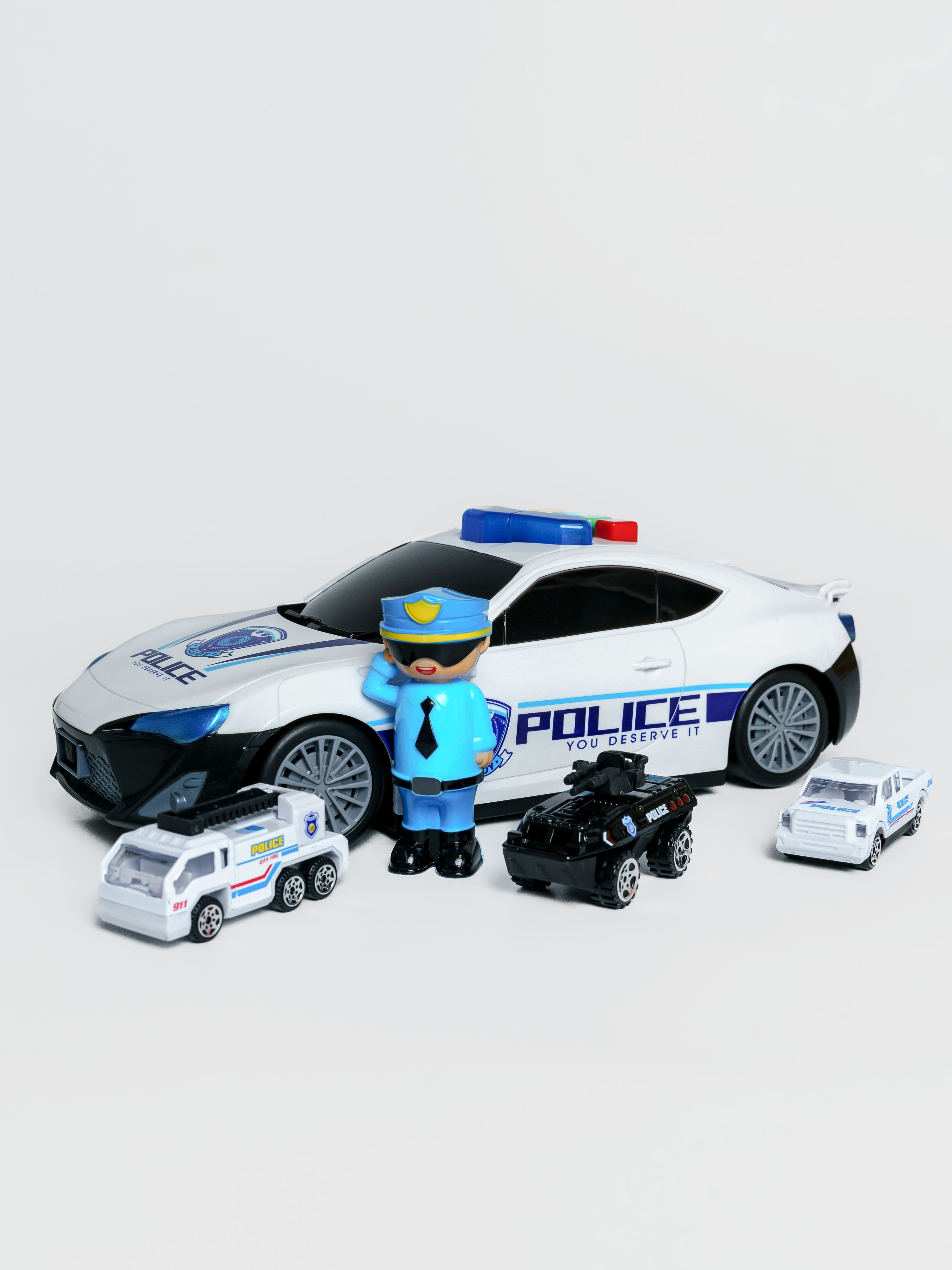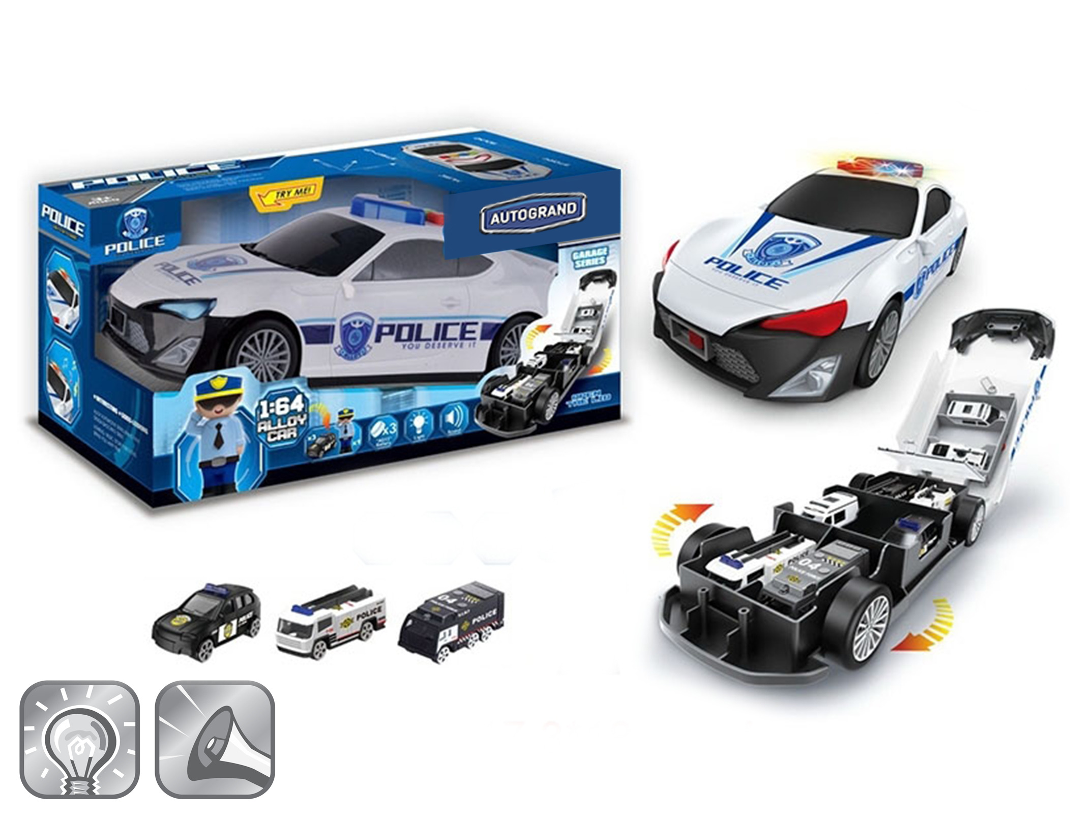 Набор Машина-парковка Полиция, открывается кузов, свет/звук, 3 металлических модели, фигурка