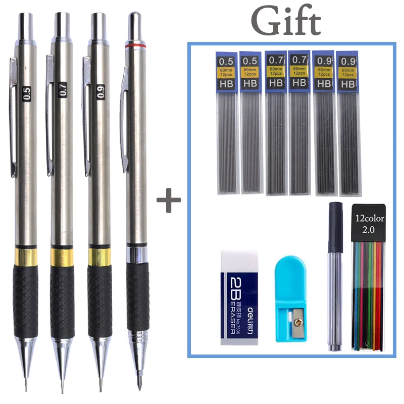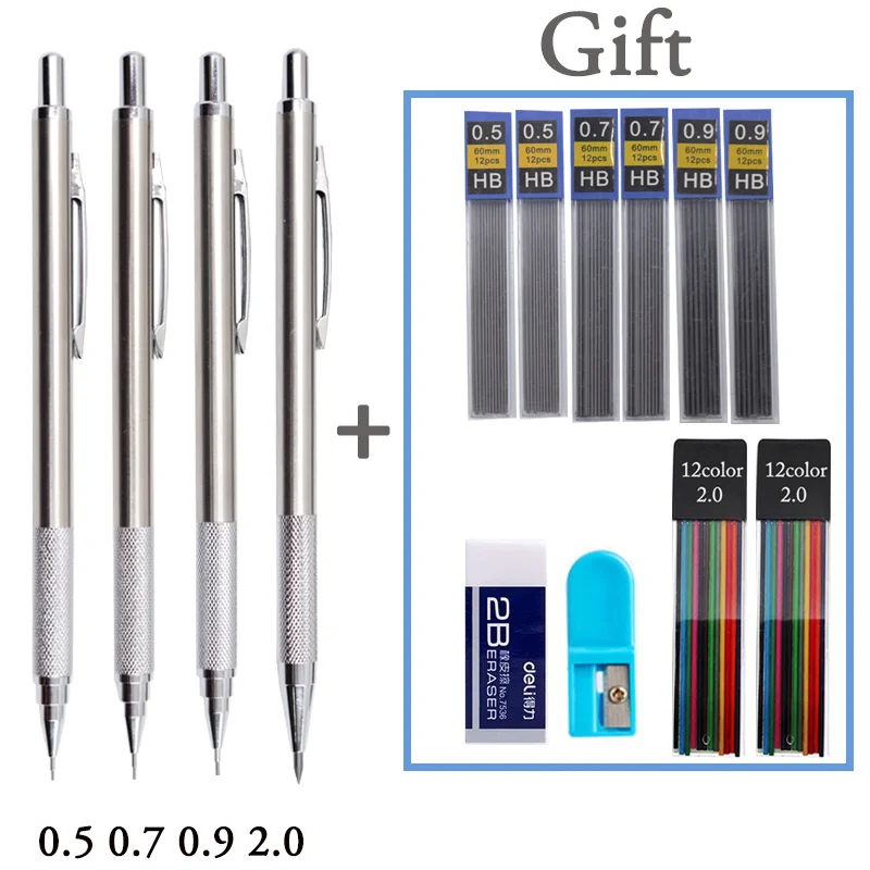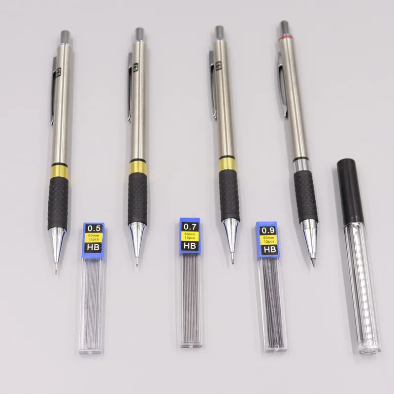 Набор механических карандашей, металлический чертежный графитовый держатель 2B HB 0,5 0,7 0,9 мм для письма, Фотоэлементы с запасными стержнями