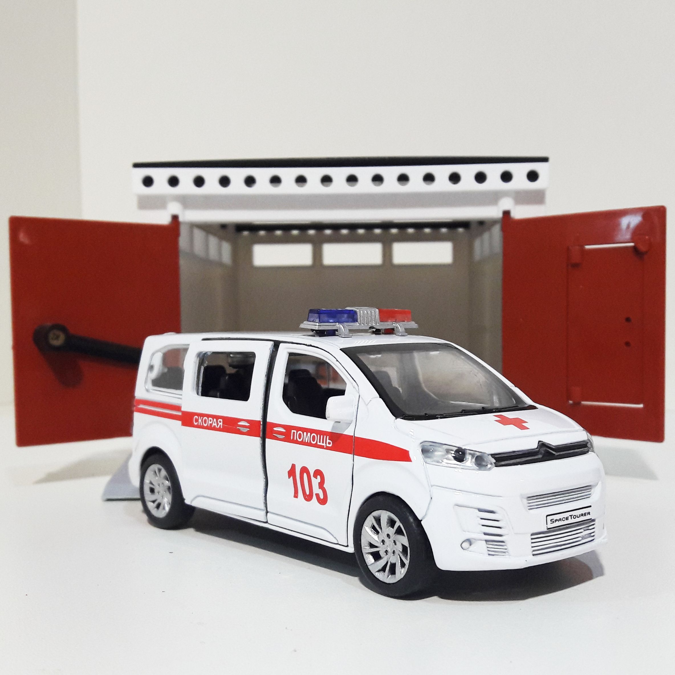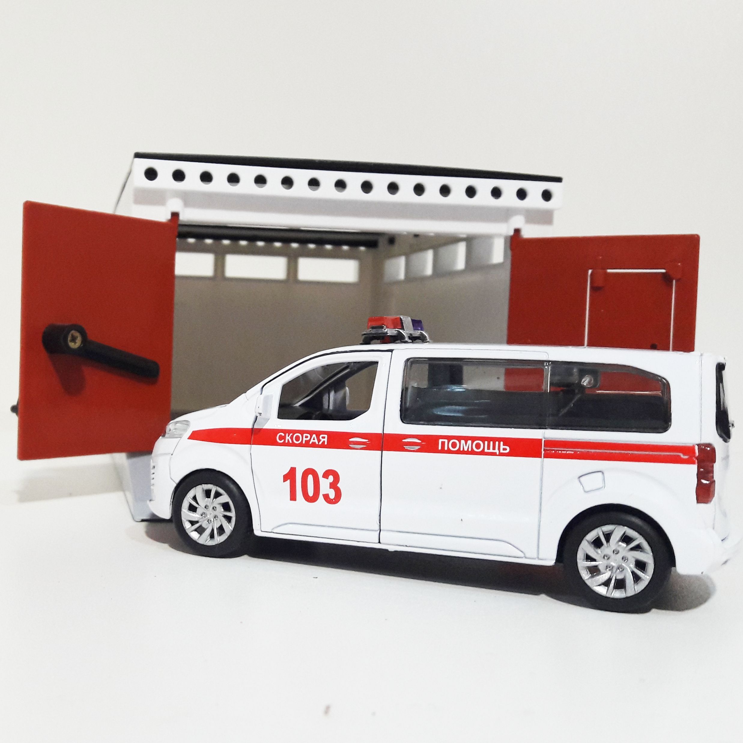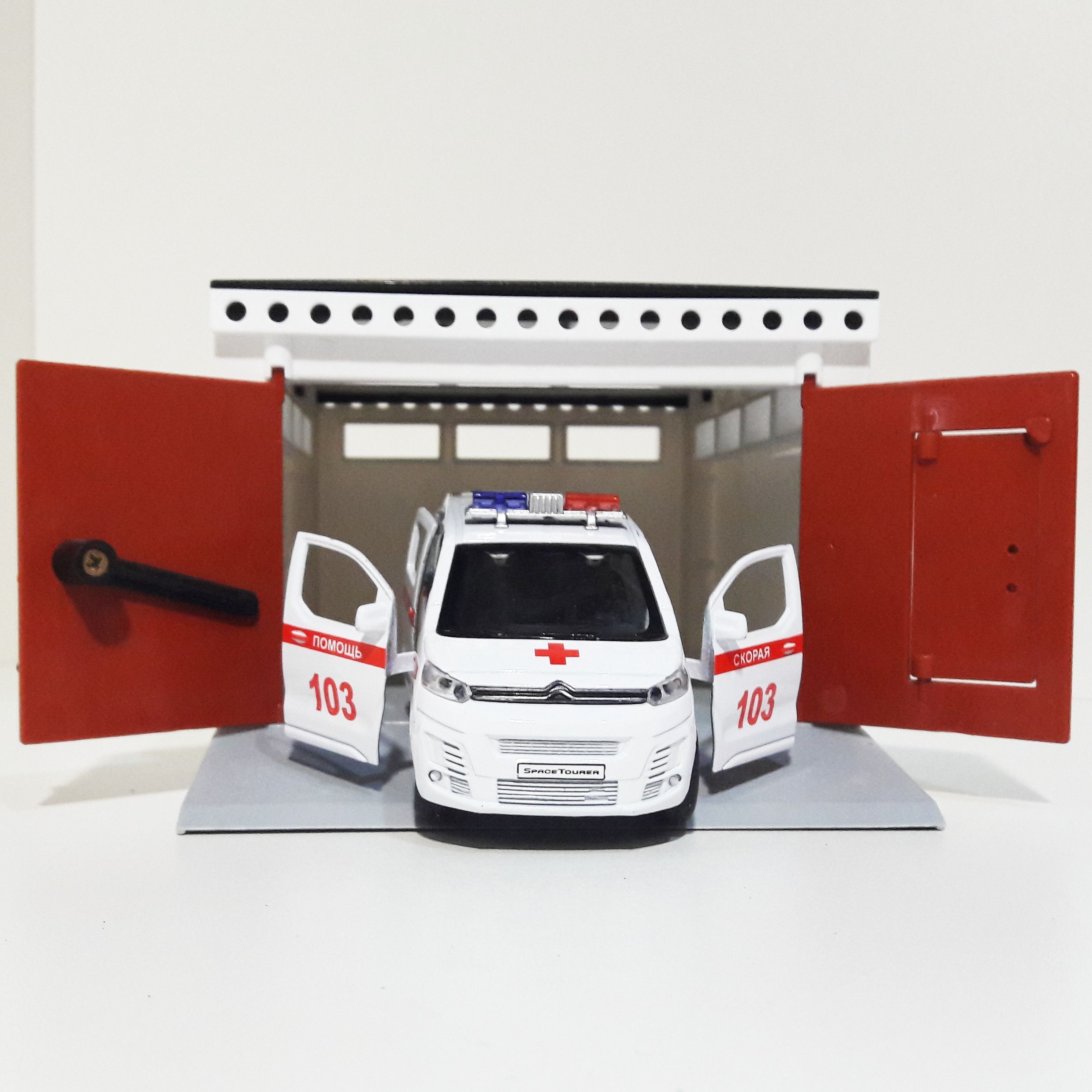 Описание: Играем в гараж и машинку скорая помощьИгровой набор: игрушечный гараж и машина модель из металла - скорая помощь.