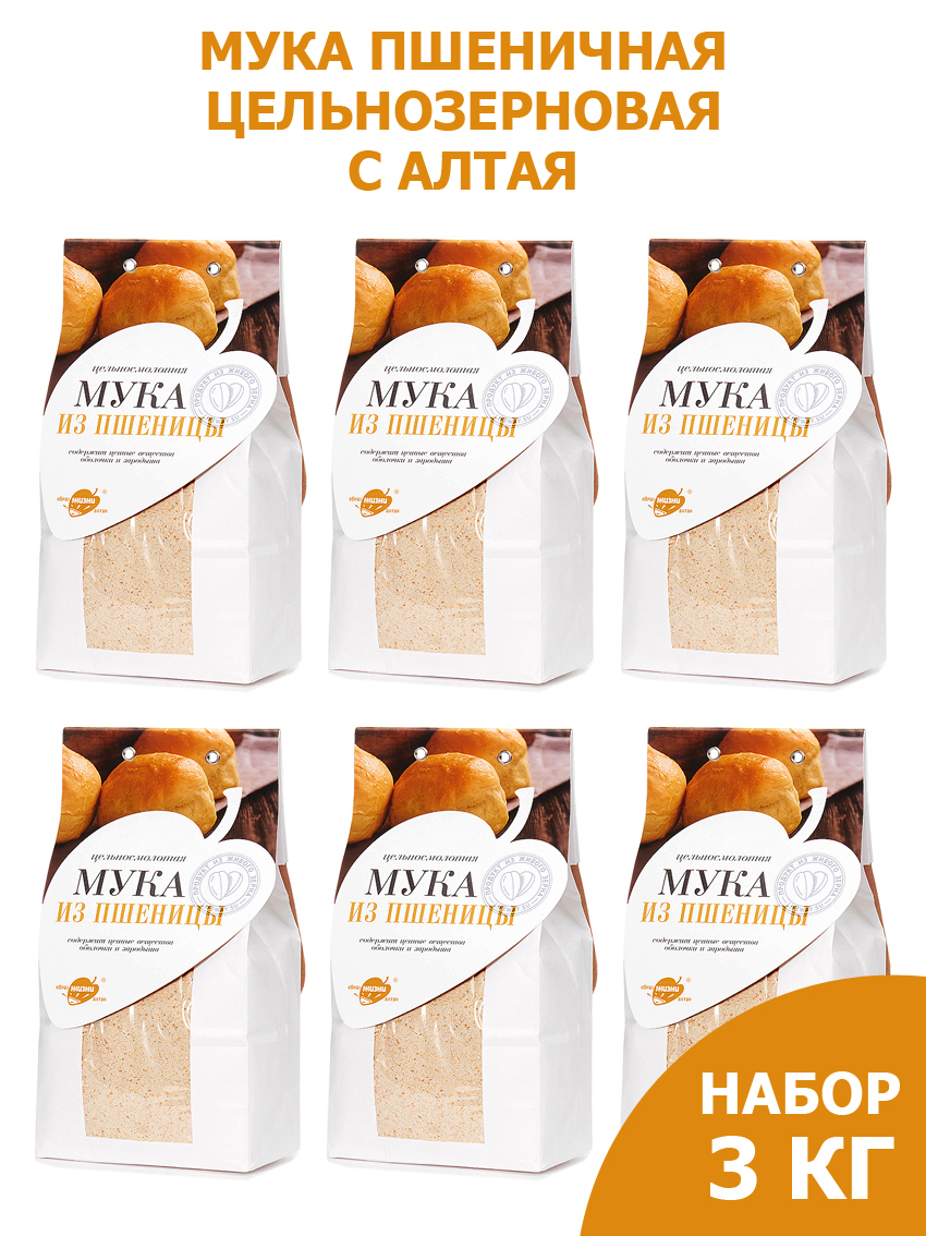 Набор Мука пшеничная цельнозерновая, 3 кг (6 шт х 500 г)