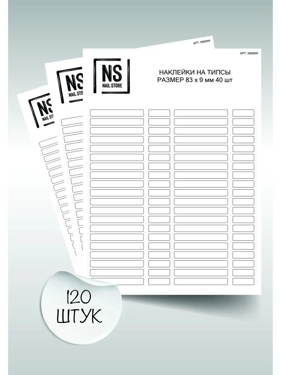 Комплектация 3 листа с наклейками на типсы по 40шт на листе