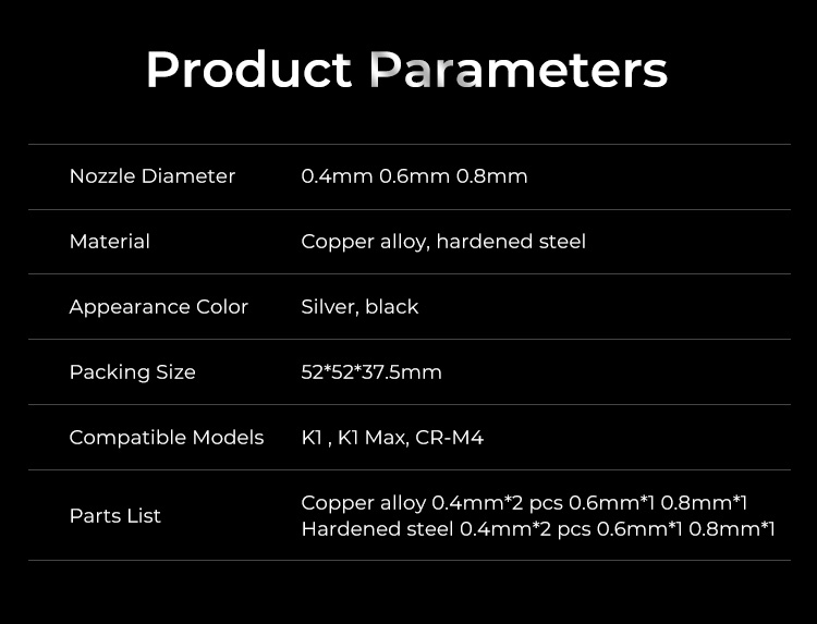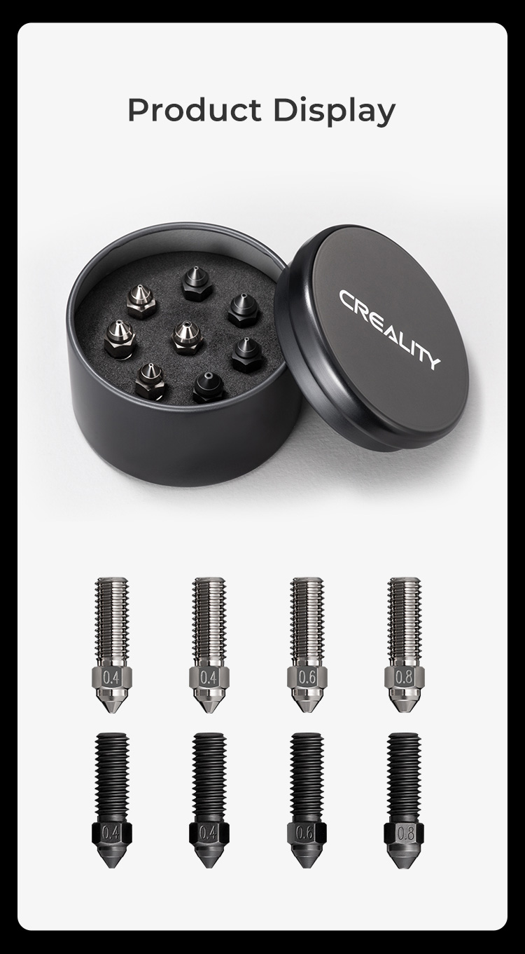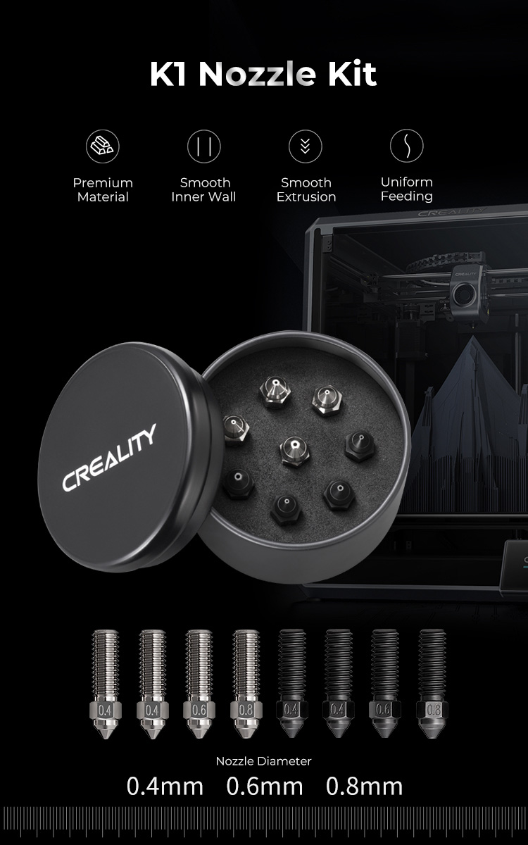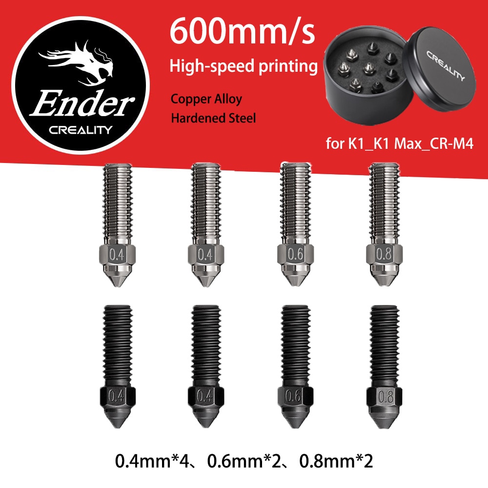 Набор насадок CREALITY New 8pcs K1 из медного сплава и закаленной стали, поддерживающая высокоскоростная печать 600 мм/с для K1_K1 Max_CR-M4