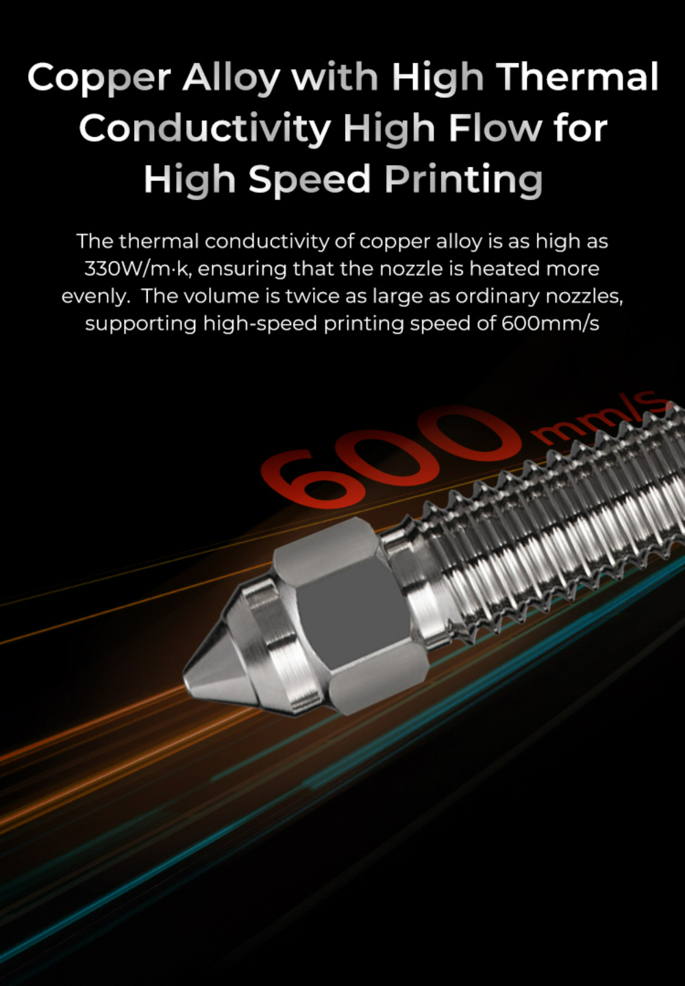 Объем в два раза больше, чем у обычных сопел, поддерживая высокоскоростную скорость печати 600 мм/с.