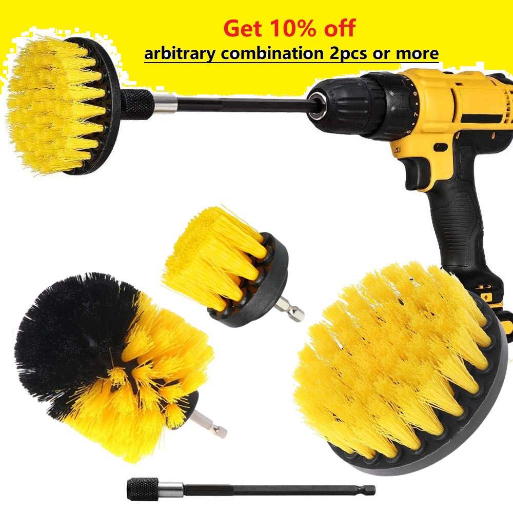 All brushes have quarter inch QUICK CHANGE shafts, cordless drill NOT included Drill NOT included.