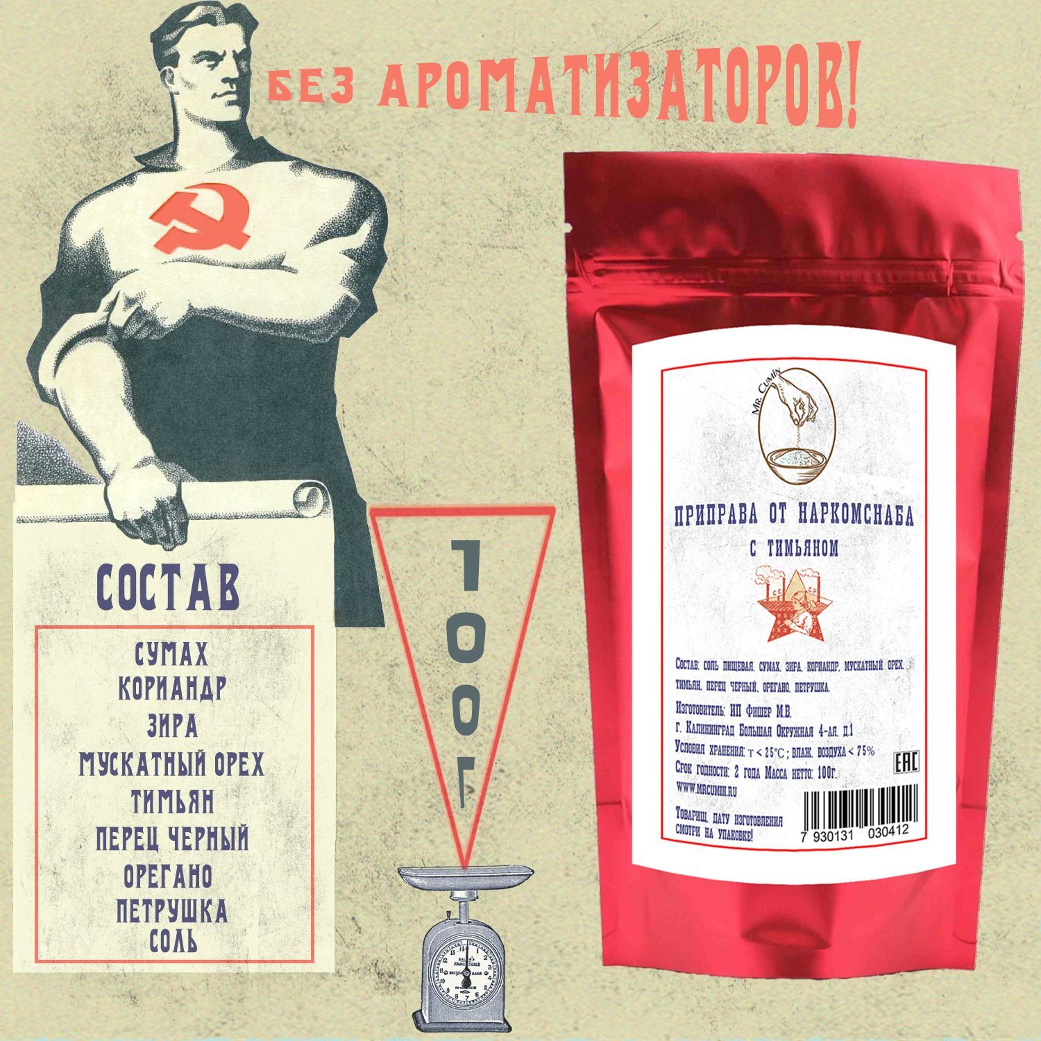 В приправе «от Наркомснаба» за основу взят сумах, очень популярный в кавказской, арабской и индийской кухне. Он придает приправе терпкий, кисловато-соленый вкус. Его аромат дополнен зирой и мускатным орехом, а травяной блок в виде тимьяна, орегано и петрушки добавляет летней свежести. Приправа «от Наркомснаба» отлично подойдет для тушеной говядины с овощами, фаршированного перца и любых блюд из птицы.