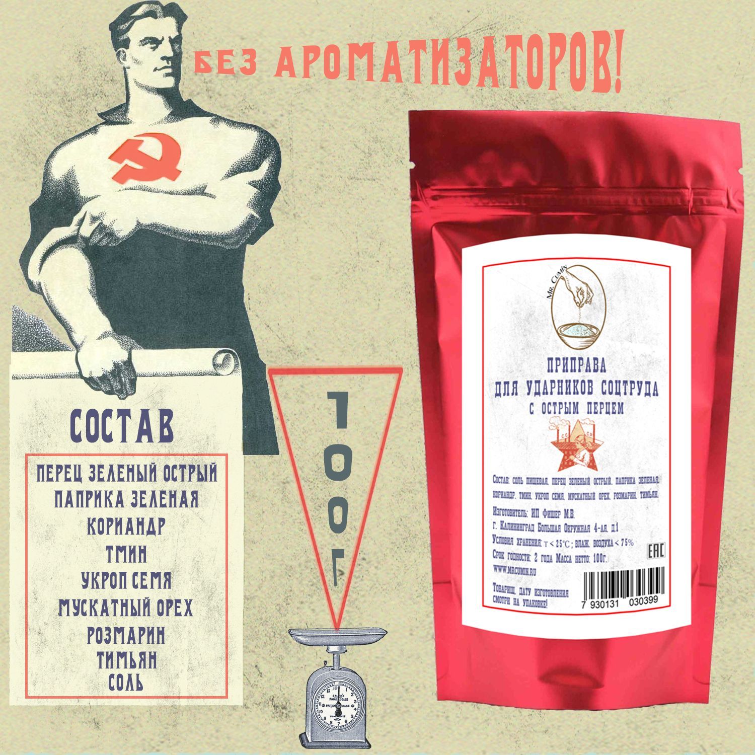 Особенной в наборе является приправа «для ударников соцтруда». В основе лежит острый зеленый перец. Это не просто приправа с остринкой, пикантной жгучестью, нет. Это очень острая приправа, в которой перец дополнен пряным тмином и кориандром. Если вам не хватает «огня», значит эта приправа для вас. Добавьте приправу «для ударников соцтруда» в любое блюдо, но с особой осторожностью!