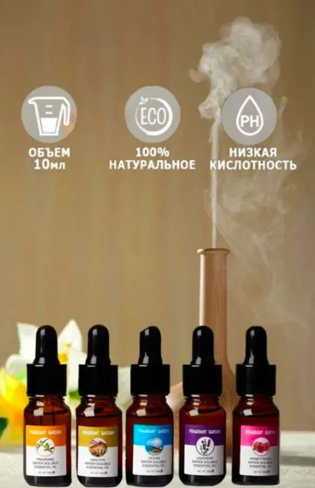 Набор натуральных водорастворимых масел, хилтон, лаванда, персик, цветочный, океан по 10 мл
