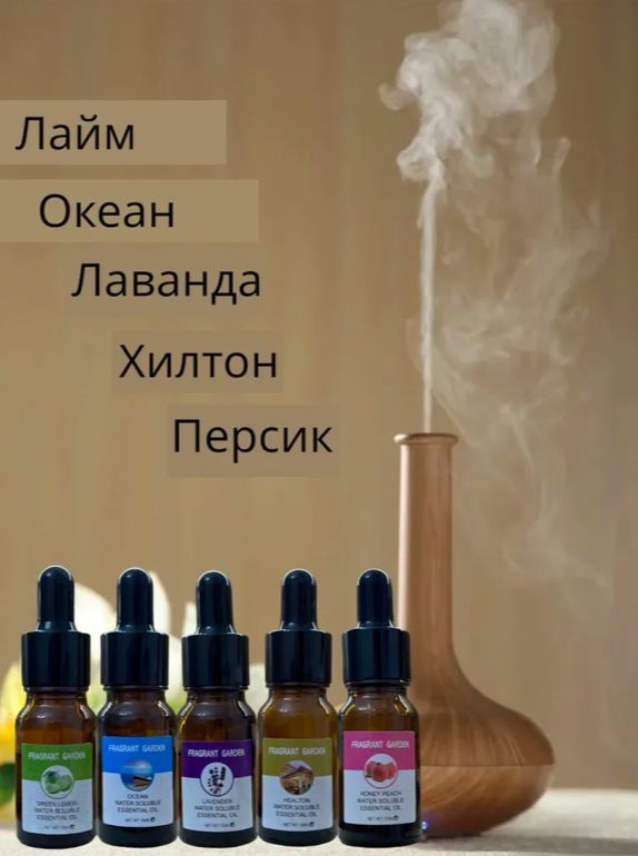 Набор натуральных водорастворимых масел, лайм, океан, лаванда, хилтон, персик по 10 мл