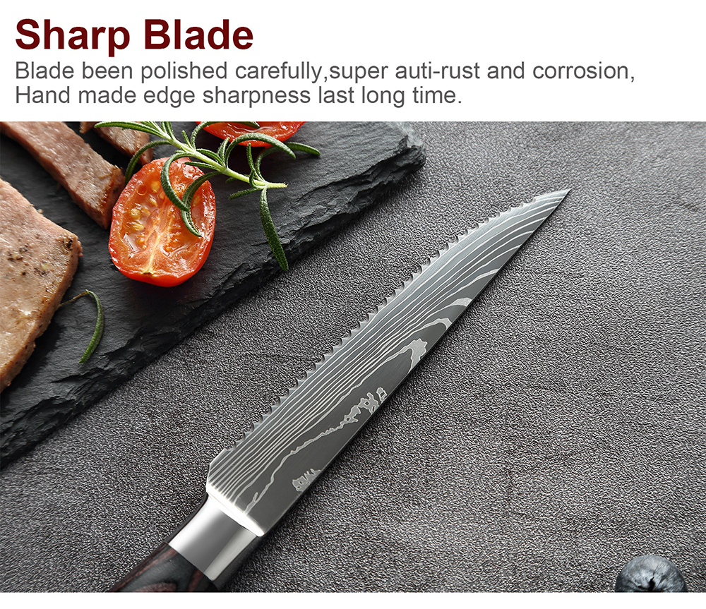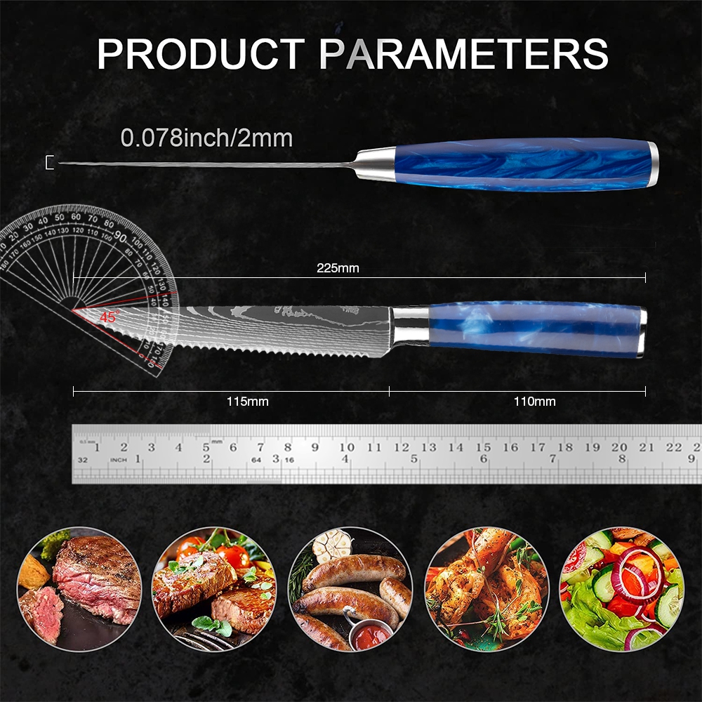 Набор ножей для стейка XITUO, из нержавеющей стали с Дамасским узором, зубчатый нож, нож для говядины, универсальный столовый нож Столовые приборы для ресторана