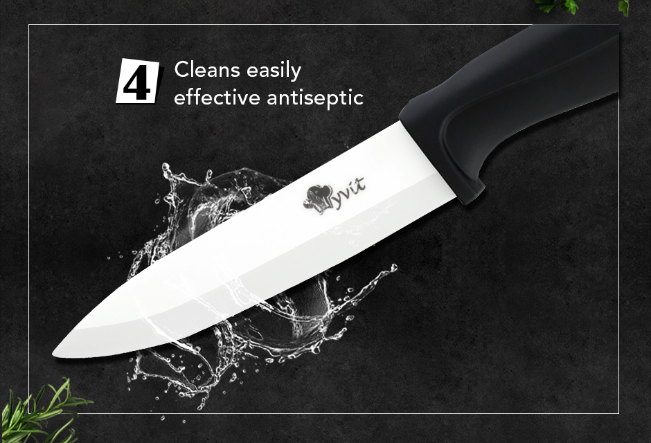 Лезвие из диоксида циркония прочнее и в 15 раз острее нержавеющей стали, никогда не ржавеет и редко нуждается в заточке, оно непроницаемы для кислот и масел и не оставляет металлического привкуса или запаха.