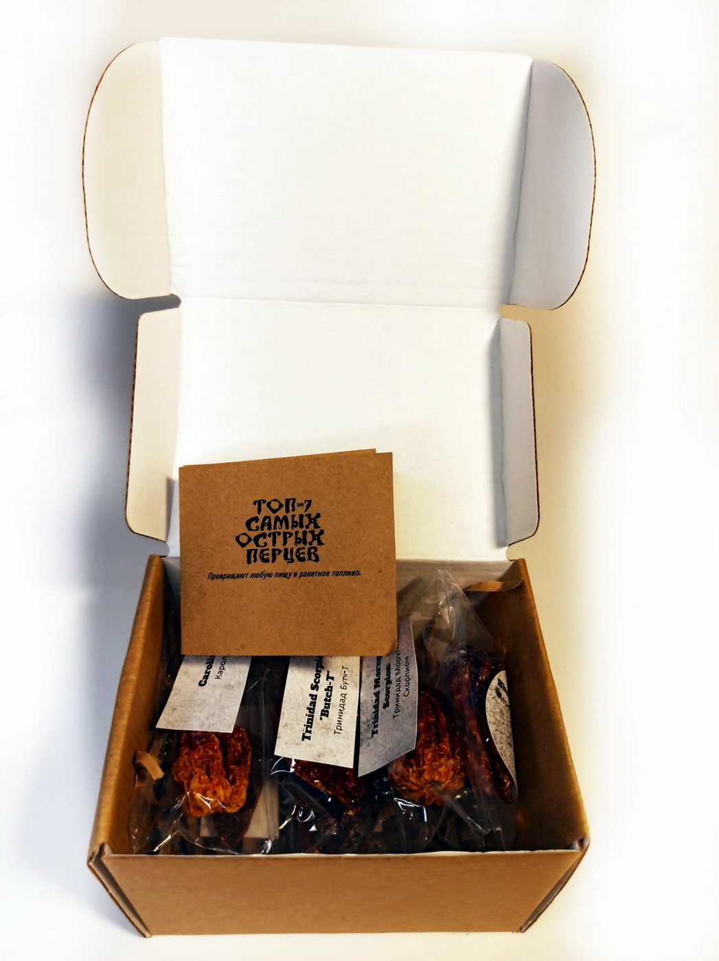 Описание: Экстремально острые перцы. Самые острые чили по версии книги рекордов Гиннесса в одной коробке. Этот набор идеально подойдет для тех, кто хочет узнать вкус, аромат и остроту самых острых чили перцев.