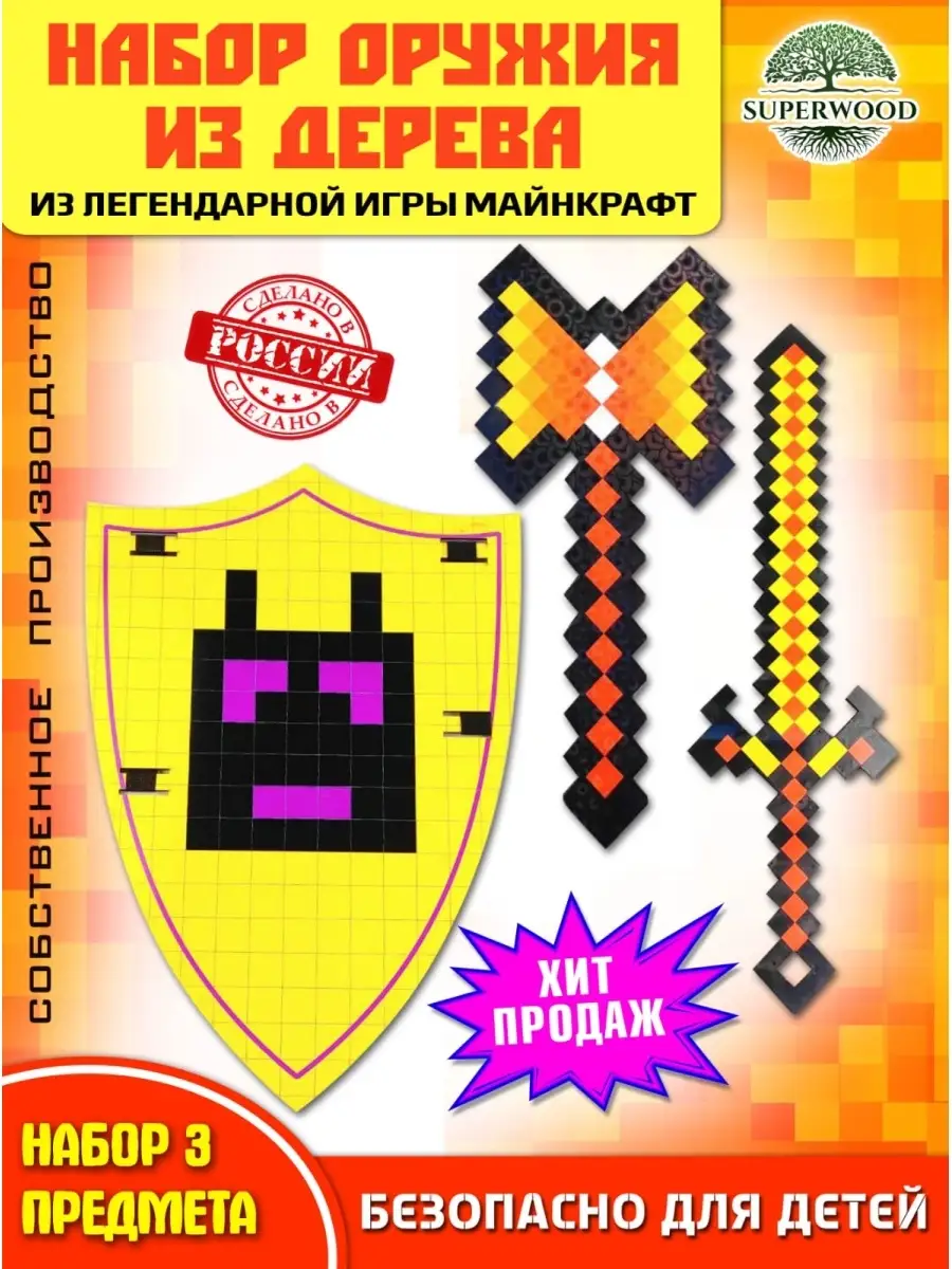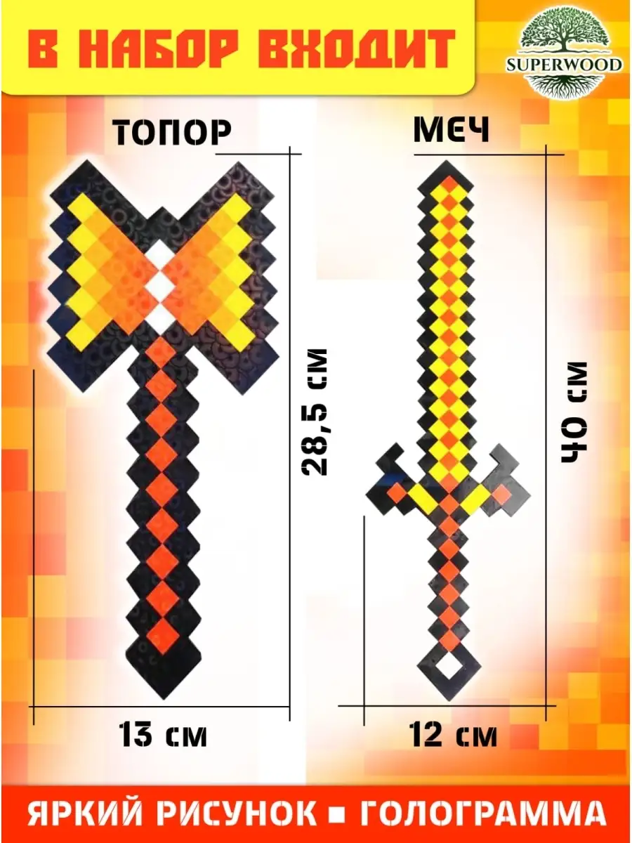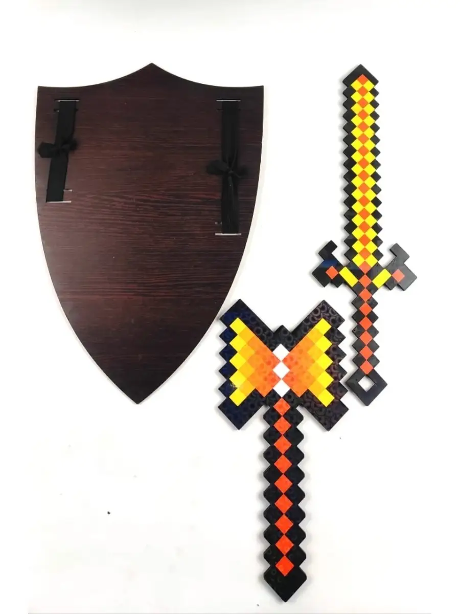 Набор пиксельного оружия Щит, Меч, Топор из игры Майн крафт