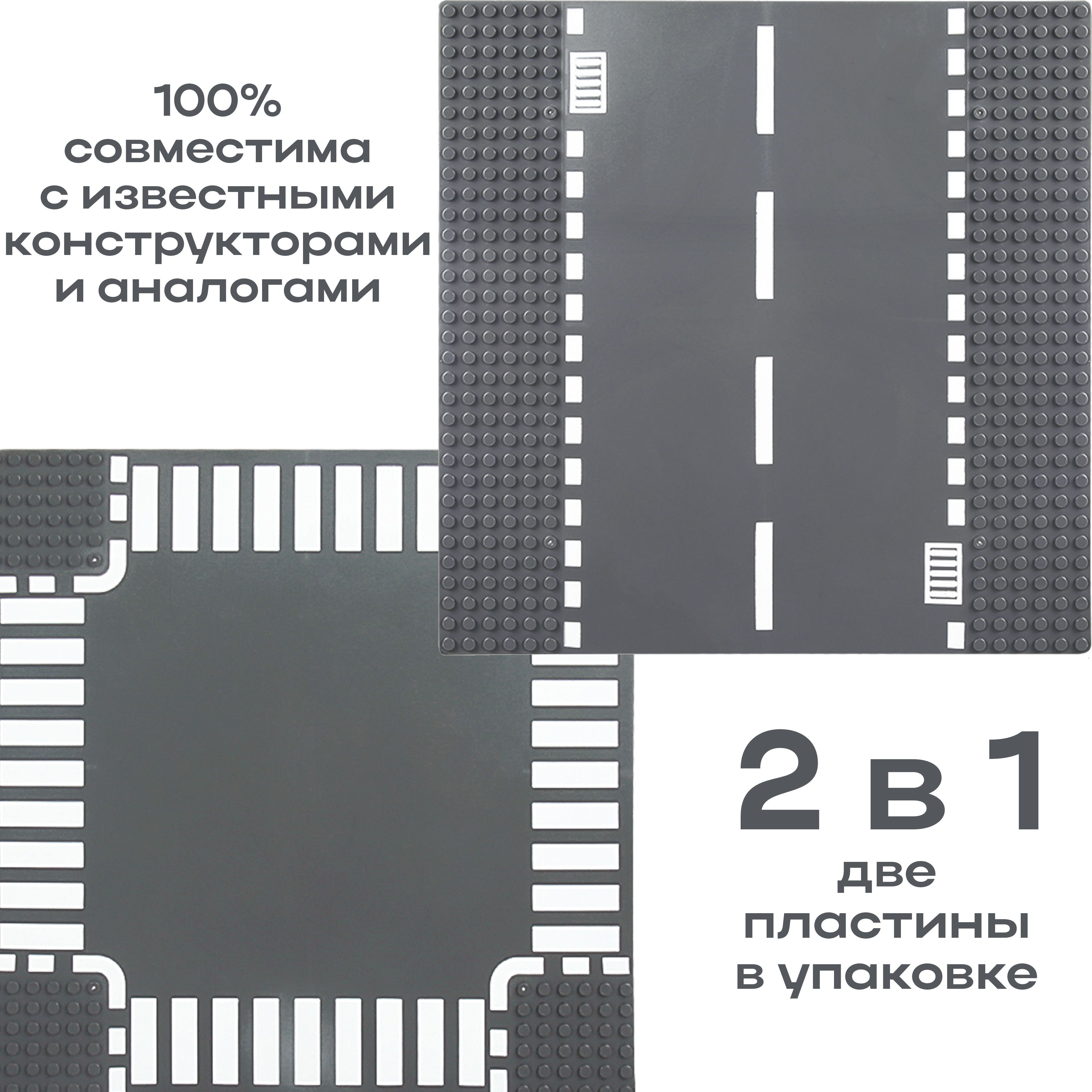 Набор пластин для конструктора 25,5 x 25,5 перекрёсток и дорога 2 в 1