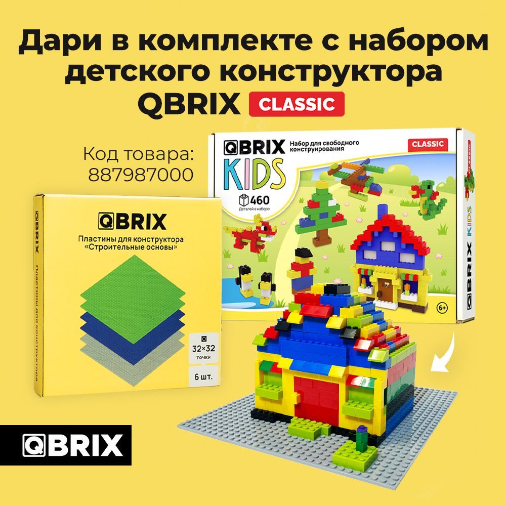 Описание: Основы совместимы со всеми известным брендами конструктораПодходят для игр как самых маленьких строителей, так и опытных!Двустороннее креплениеОбъединяй основы горизонтально или вертикально!Погрузись в мир захватывающих игр вместе с QBRIX!