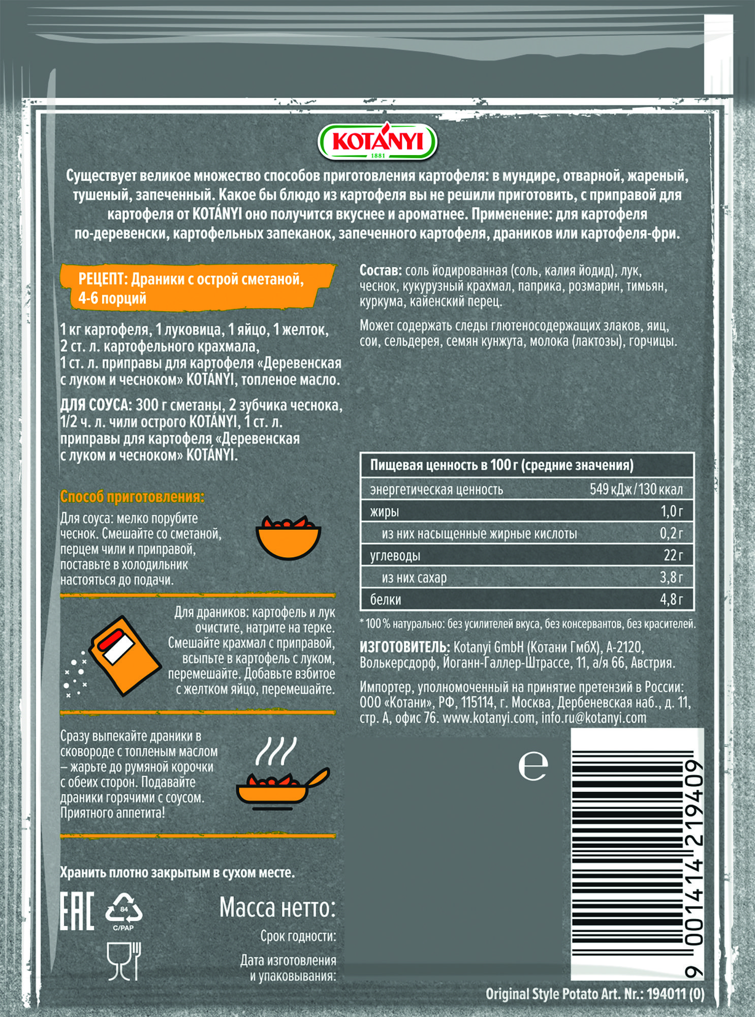 Описание: В набор приправ для сытных блюд KOTANYI входит: Приправа для гриля и шашлыка Шашлык на углях KOTANYI, 30г; Приправа для плова KOTANYI, 20г; Приправа для картофеля Деревенская с луком и чесноком KOTANYI, 20г. 100% натуральные ингредиенты: без усилителей вкуса, без консервантов и без красителей.Состав: Приправа для гриля и шашлыка Шашлык на улях (соль йодированная (соль, калия йодид), паприка, тмин, чеснок, кайенский перец.), Приправа для плова (соль йодированная (соль, калия йодид), паприка, кориандр, барбарис, сахар, кумин, чеснок, кайенский перец, лук, куркума. ), Приправа для картофеля Деревенская с луком и чесноком (соль йодированная (соль, калия йодид), лук, чеснок, кукурузные крахмал, паприка, розмарин, тимьян, куркума, кайенский перец.)
