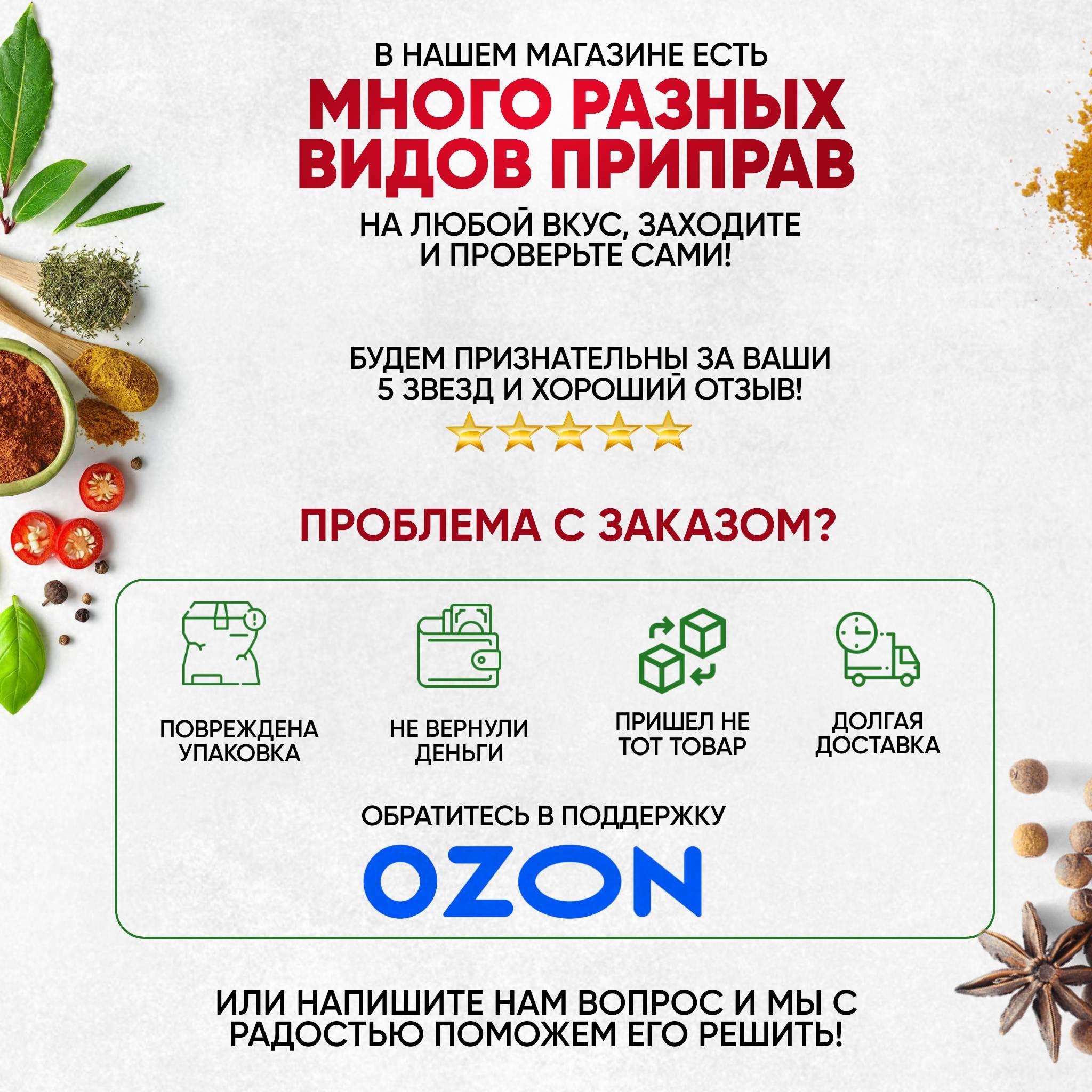 На его основе всегда будут пикантные маринады к овощам, мясу, которые можно приготовить на гриле, обжарить на сковороде или открытом огне на решетке или шампурах, получаются ароматные и густые соусы и заправки к горячим блюдам, супам. Для вегетарианской кухни и людей, ведущих ЗОЖ это просто находка! 100% натуральный состав Наши приправы, специи, смеси и травы всегда имеют свежий помол и вкус, восхитительный аромат, без ароматизаторов, без консервантов и усилителей вкуса! У Вас проблемы с заказом? Уважаемый покупатель, если пришел не тот товар, не вернули деньги, повреждена упаковка или долгая доставка товара, пожалуйста, не торопитесь ставить плохую оценку или оставлять плохой отзыв, напишите нам и мы поможем решить эту проблему!