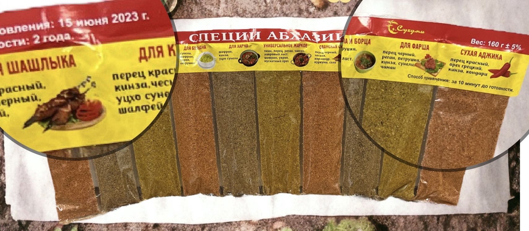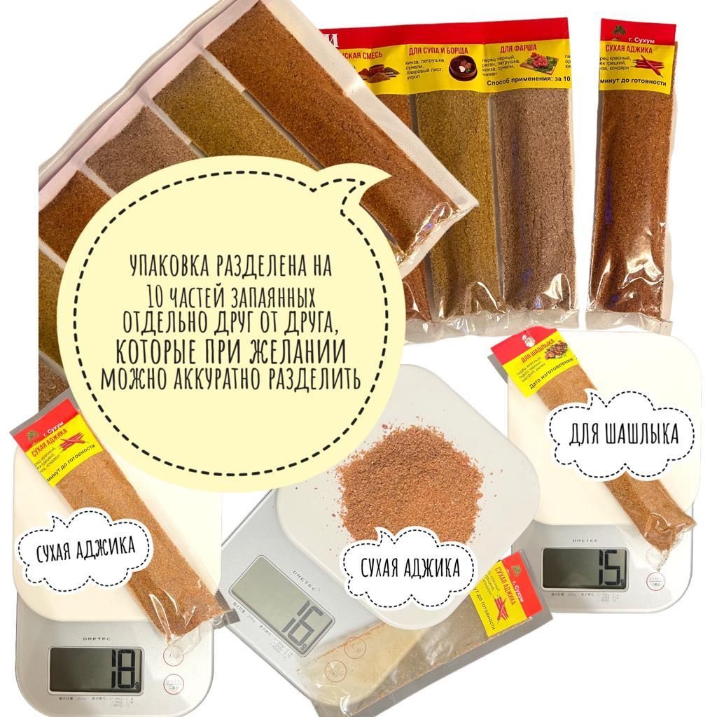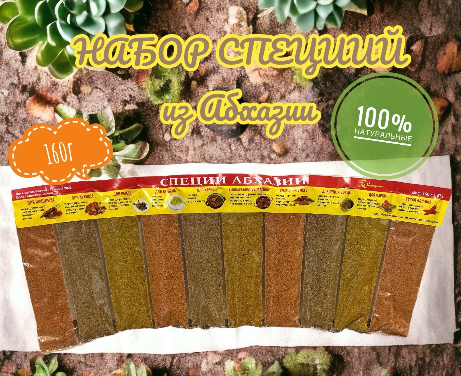 Специи Абхазии 10 видов из натуральных компонентов не содержат соль, вкусовые и искусственные добавки, представлены в измельченном виде и полностью готовы к использованию.