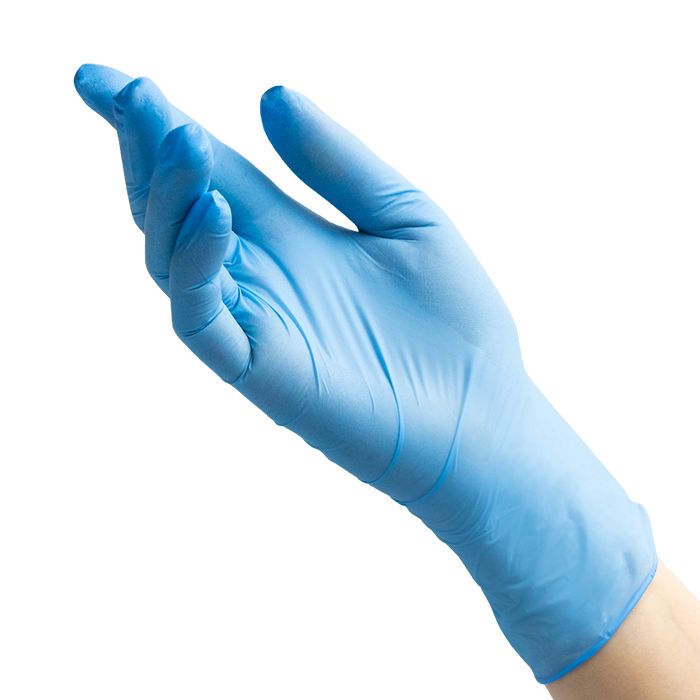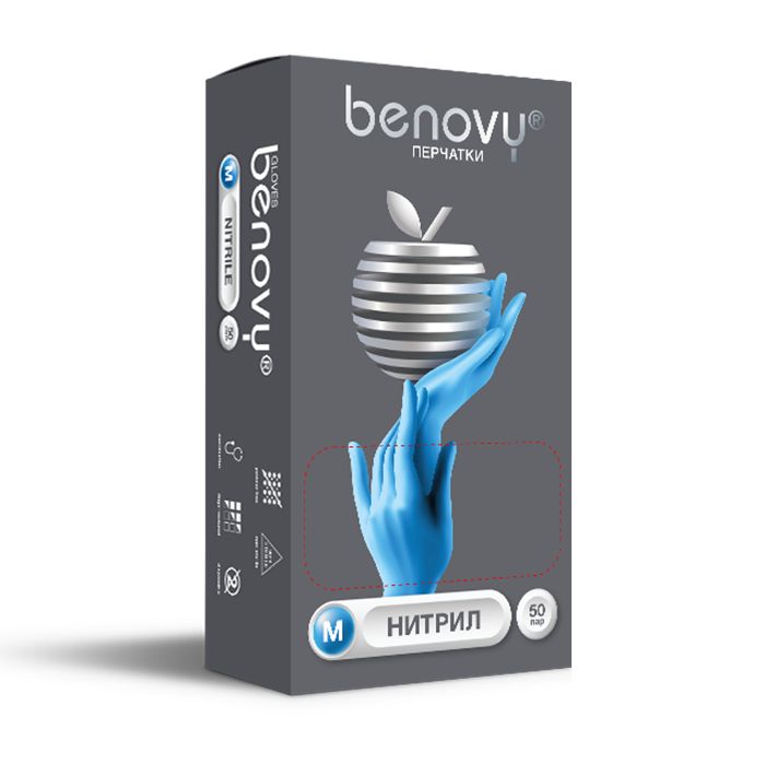 Описание: Перчатки нитриловые одноразовые голубого цвета Benovy.