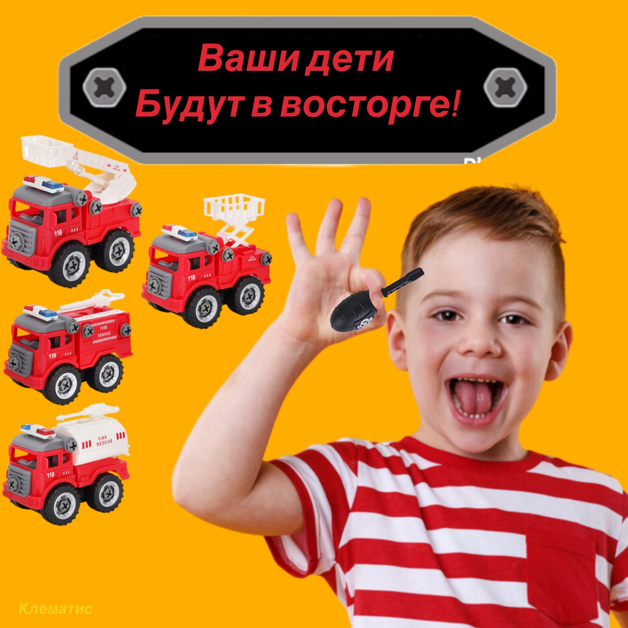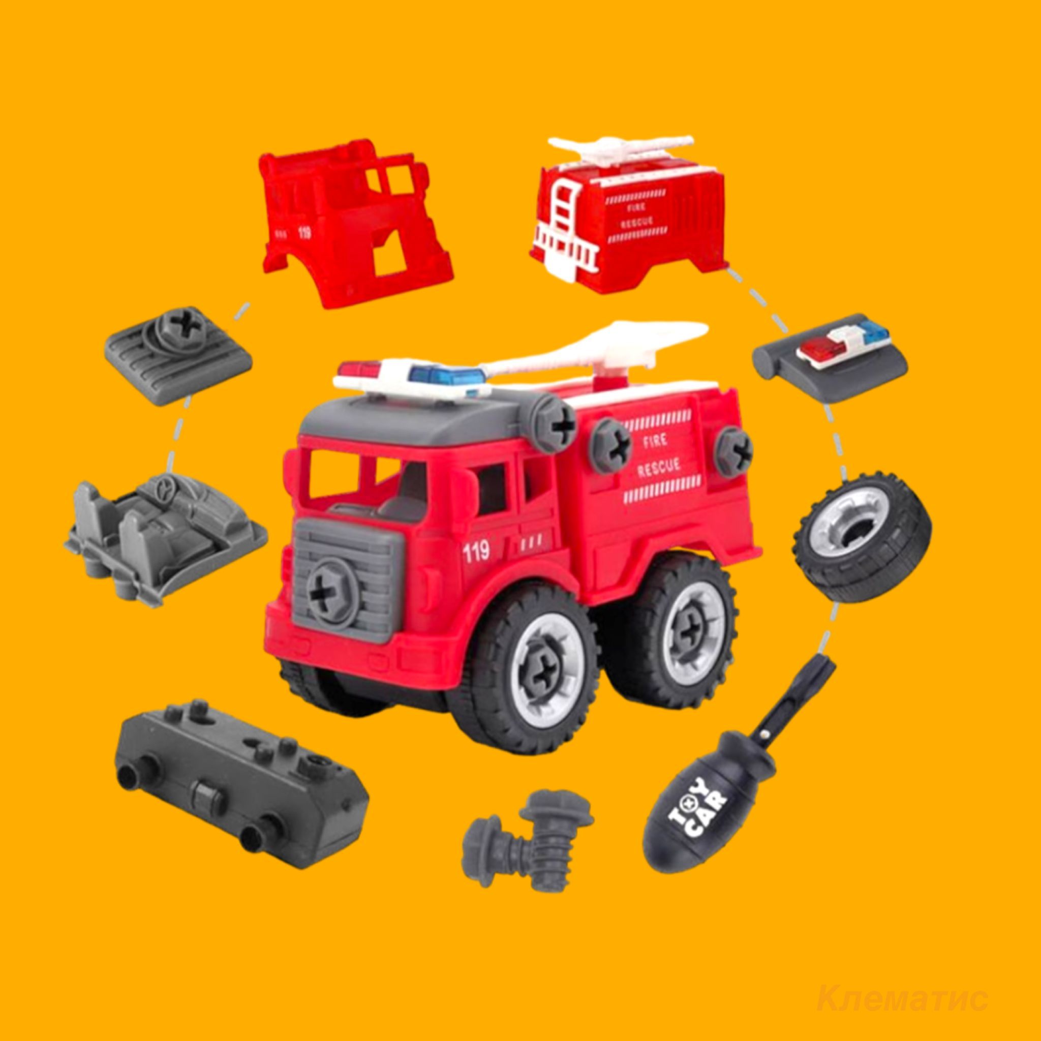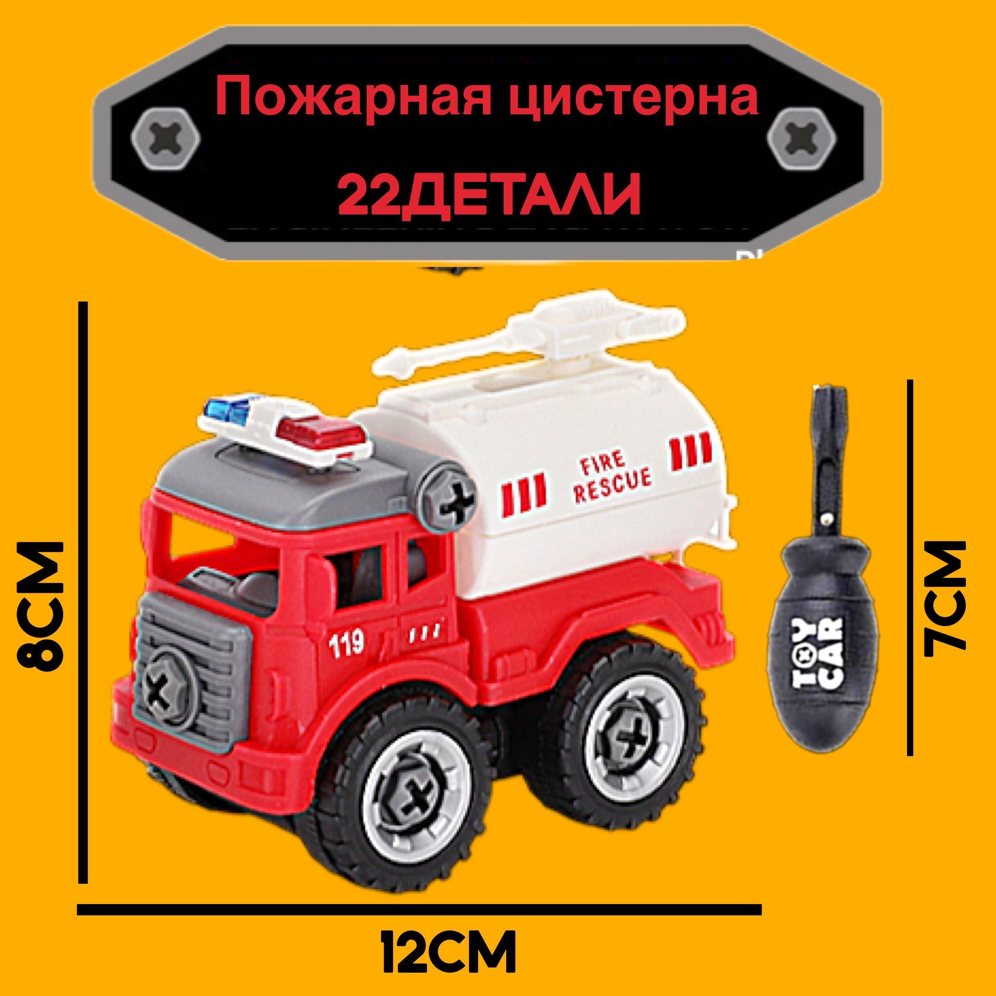Набор разборных машинок с отверткой "Пожарная Спецтехника" /Винтовой конструктор с отверткой Пожарная спецтехника