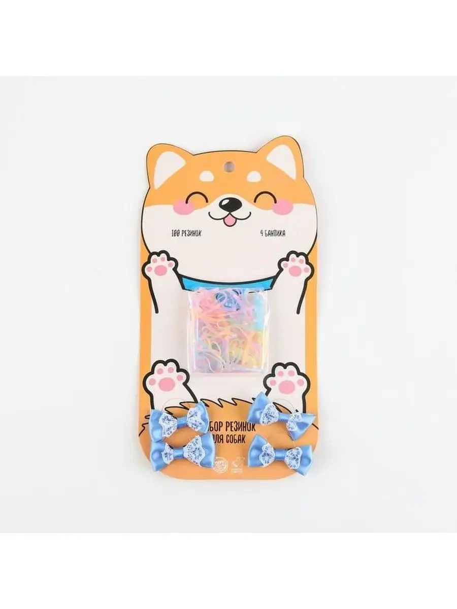 Набор резинок для собак, с голубыми бантиками, 1 набор.