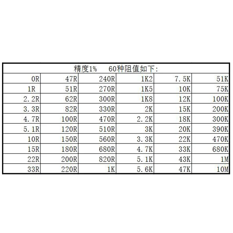 Набор резисторов 0805 SMD в ассортименте, 1 ом-10 МОМ, 1% 60 ценностей, 25 шт. = 1500 шт., набор образцов