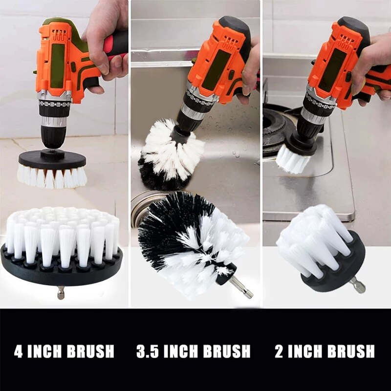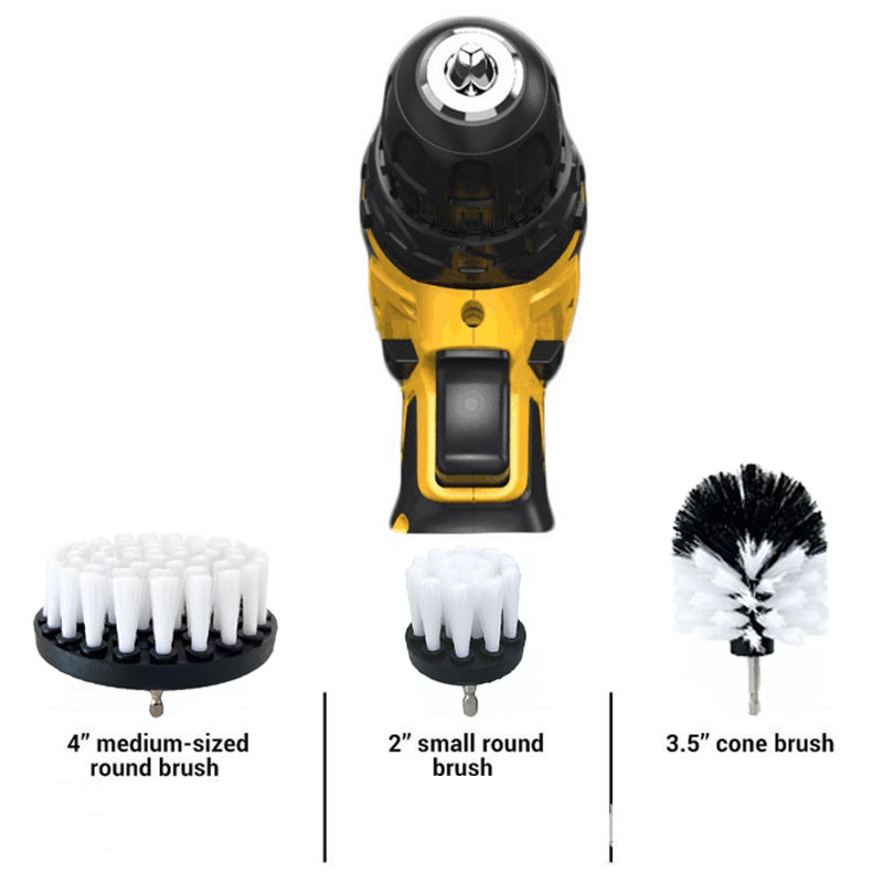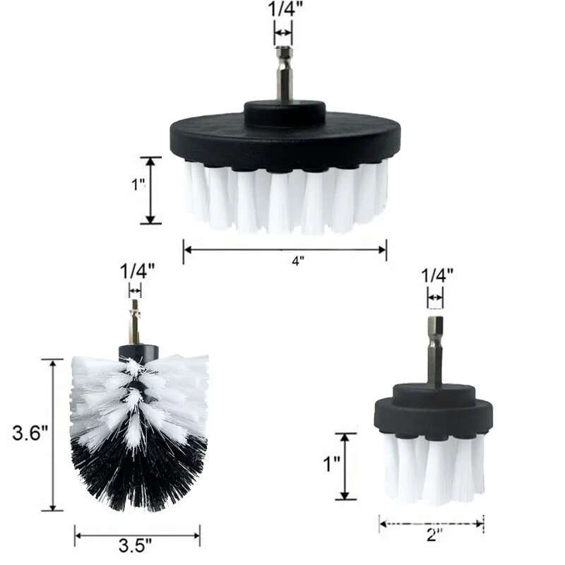 Особенности: Этот комплект содержит нейлоновые силовые щетки средней жесткости, которые можно прикрепить к вашей любимой аккумуляторной дрели. Щетки 3 разных размеров и форм для чистки поверхностей в ванной комнате. Эти нейлоновые щетинки не царапаются и могут использоваться для ванн, раковин, плинтусов, душевых кабин из стекловолокна, дверных направляющих для душа и фарфора. Все три щетки имеют валы с БЫСТРЫМ ИЗМЕНЕНИЕМ на четверть дюйма, Аккумуляторная дрель в комплект не входит.