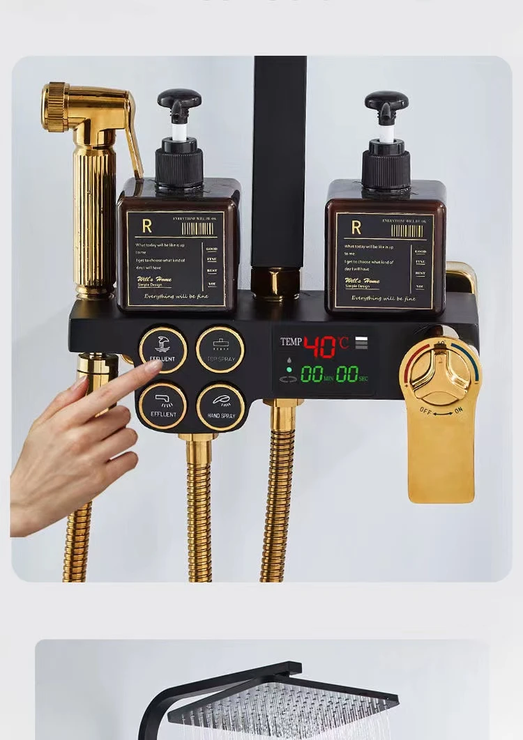 Набор смесителей для душа D-till, латунная спа-система, дождевой смеситель «Водопад», Черная Нержавеющая Сталь, фотохромные золотые смесители, набор инструментов